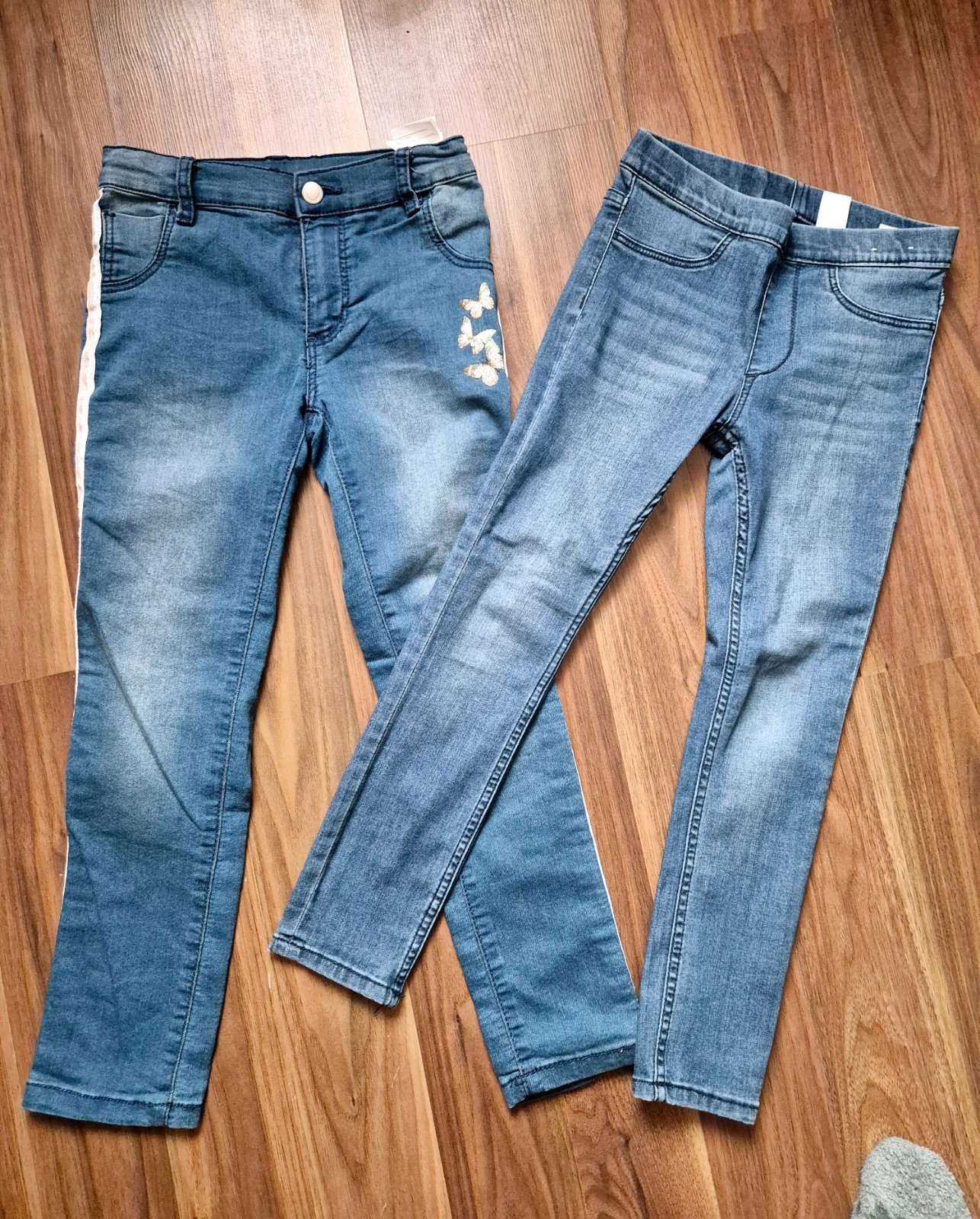Predam raz nosené rifle H&M veľkosť 122. Bez vád. Druhé Dopodopo veľkosť 122, raz nosené. Oboje krásne elastické