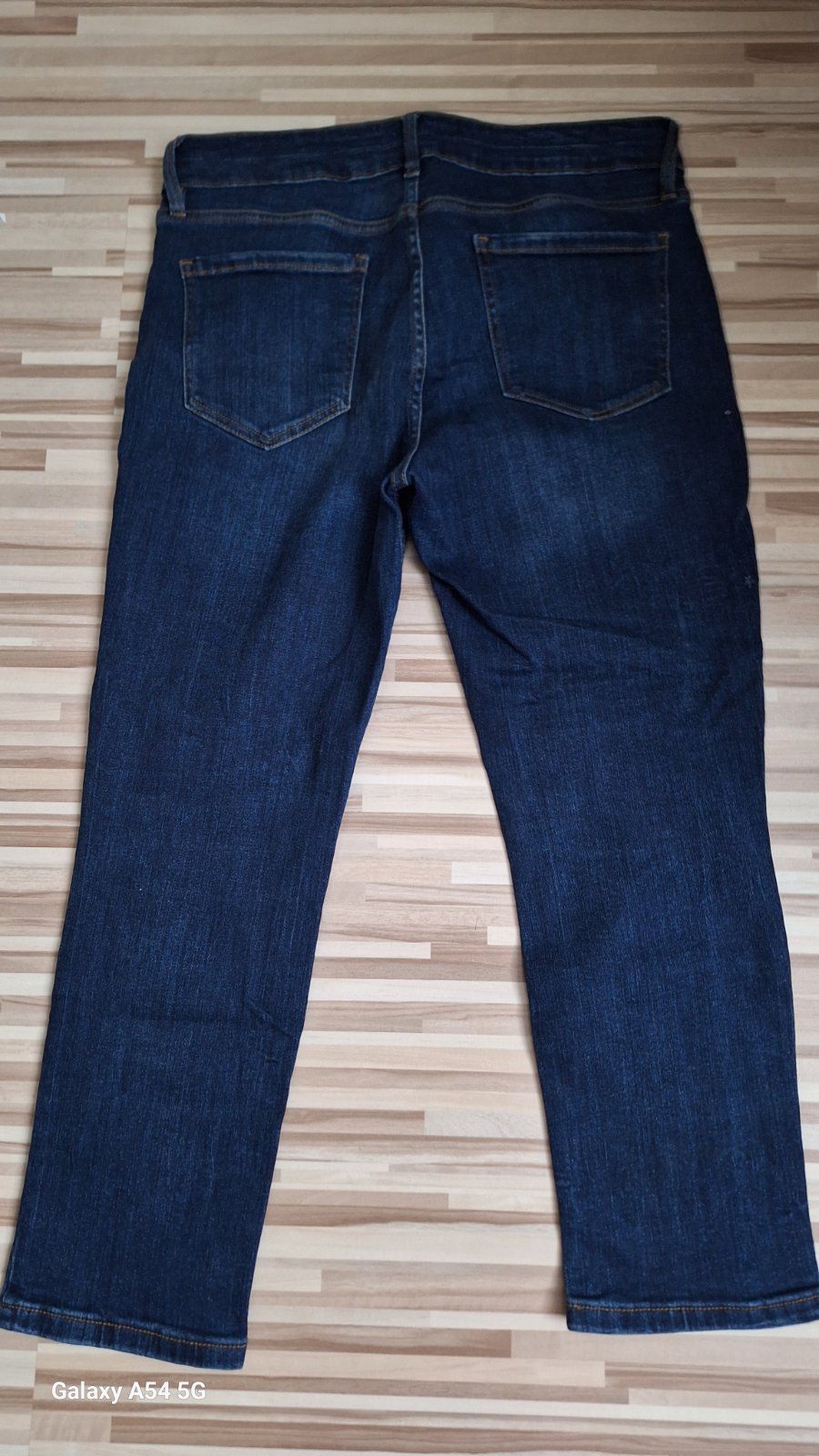 Obelečené len 2x. Skor na nižšiu postavu.Dlžka riflí je 94cm a šírka pásu 42cm.