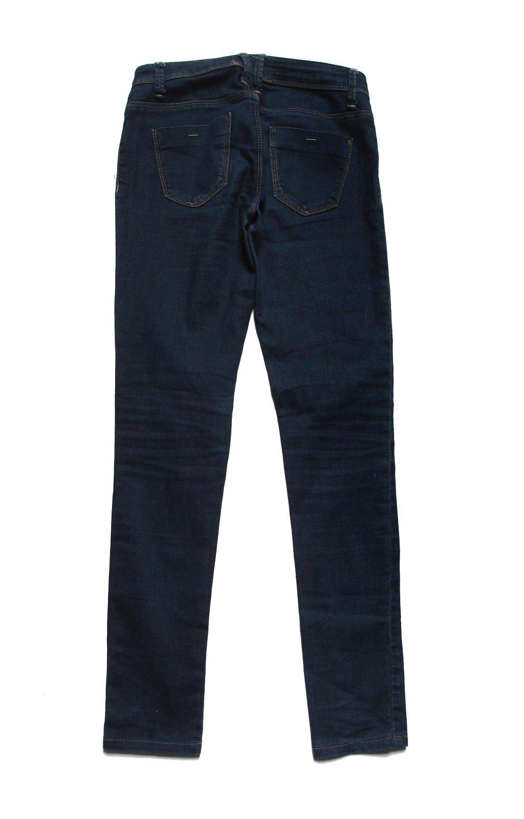 pohodlné elastické rifle z tenšej rifloviny, uv. veľ. XS, rozmery a=89cm b= 70cm, c= od37do44cm, natiahnu sa podľa potreby, veľmi dobrý nosený stav bez poškodení.
