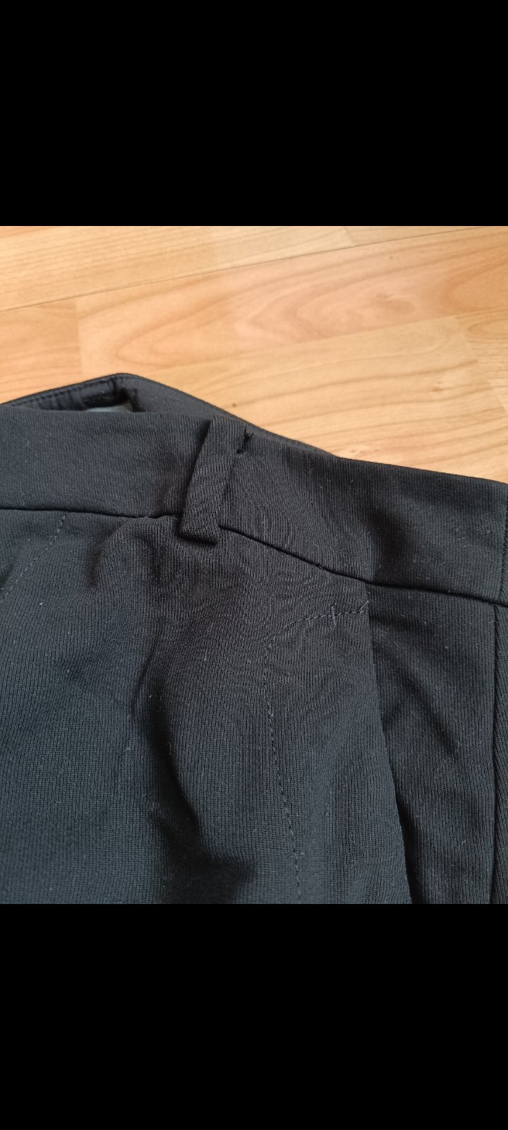 Nohavice ľahkej priedušnej látky. Farba sa dá len ťažko zachytiť pod umelým svetlom, v skutočnosti je olivová. Keďže nosím iné číslo, neviem ich lepšie odfotiť(zboku ich držím, aby vyzerali reálne ...