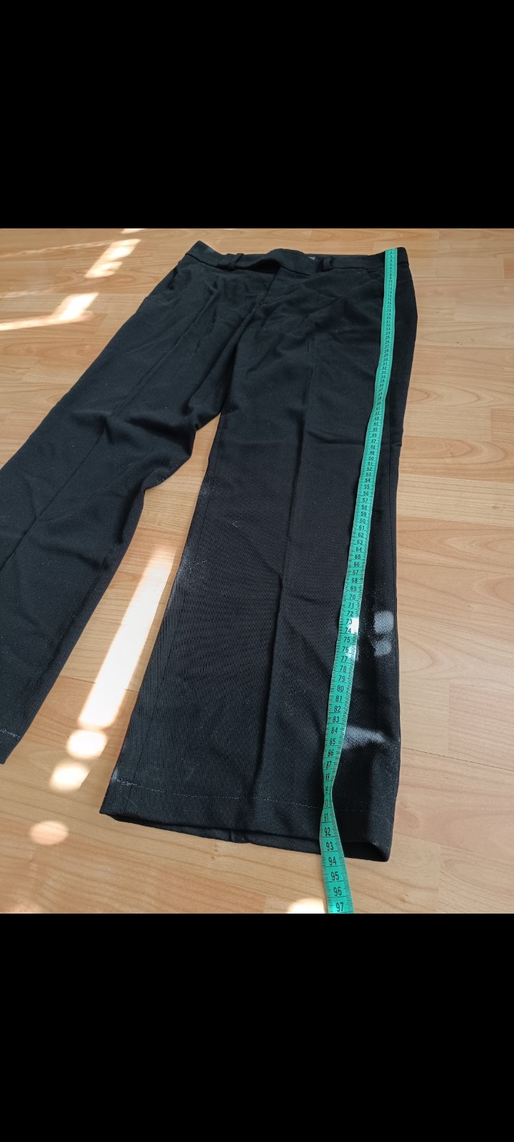 Dĺžka 99cm, sirka cez pas 35cm veľkosť 40 V super stave az na jednu chybičku vzadu na zadko akoby povolený jeden švik Inak su este stale velmi pekne