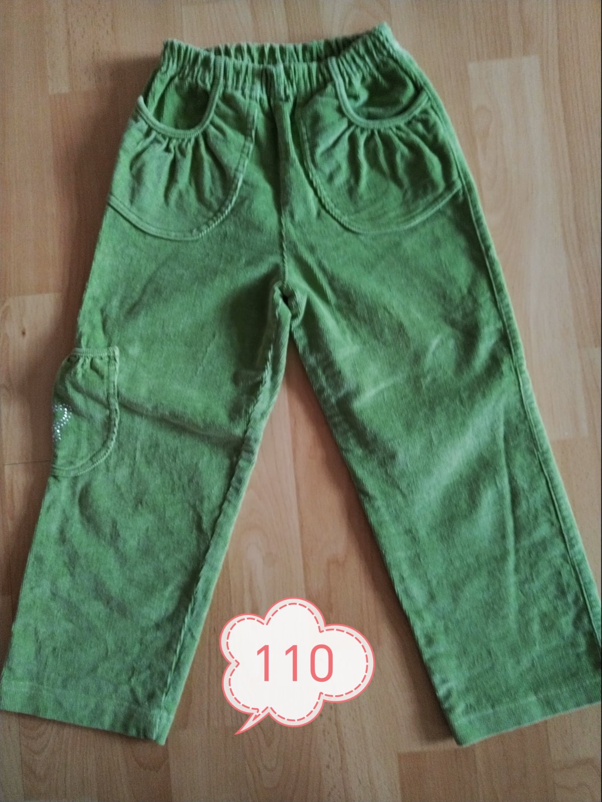 Nohavice so srdiečkami, bez poškodenia, sú vhodné na chudšie dievčatko, majú našitú gumičku. Veľkosť 4-5rokov,vzadu majú vrecká. Podobné mám aj v ružovej farbe, veľkosť 104.V