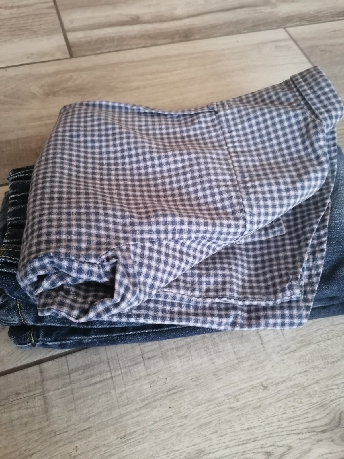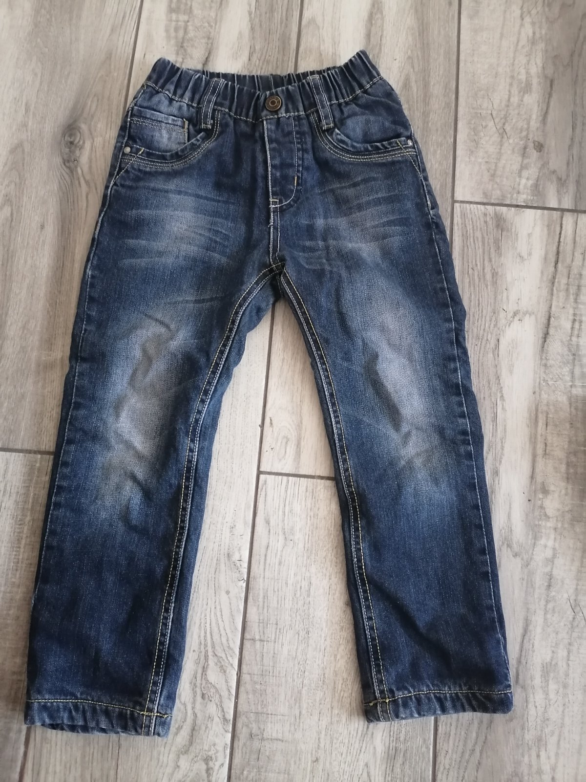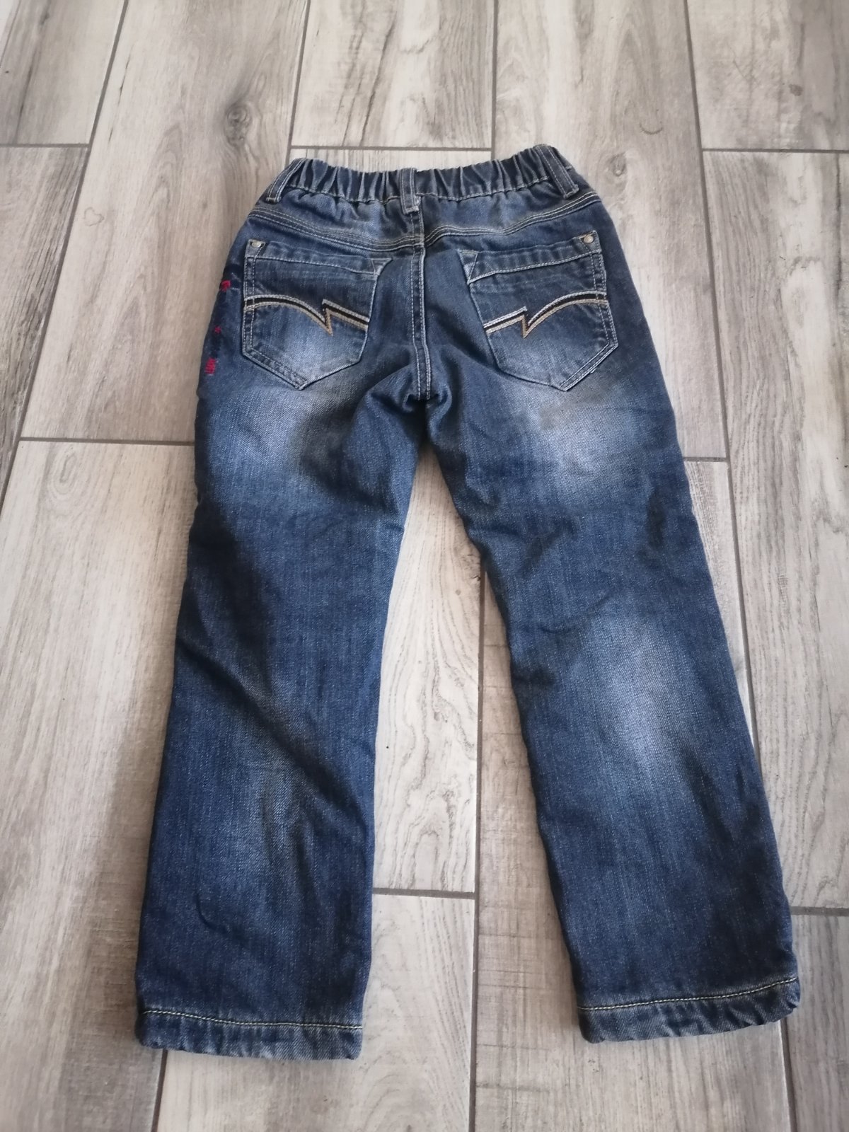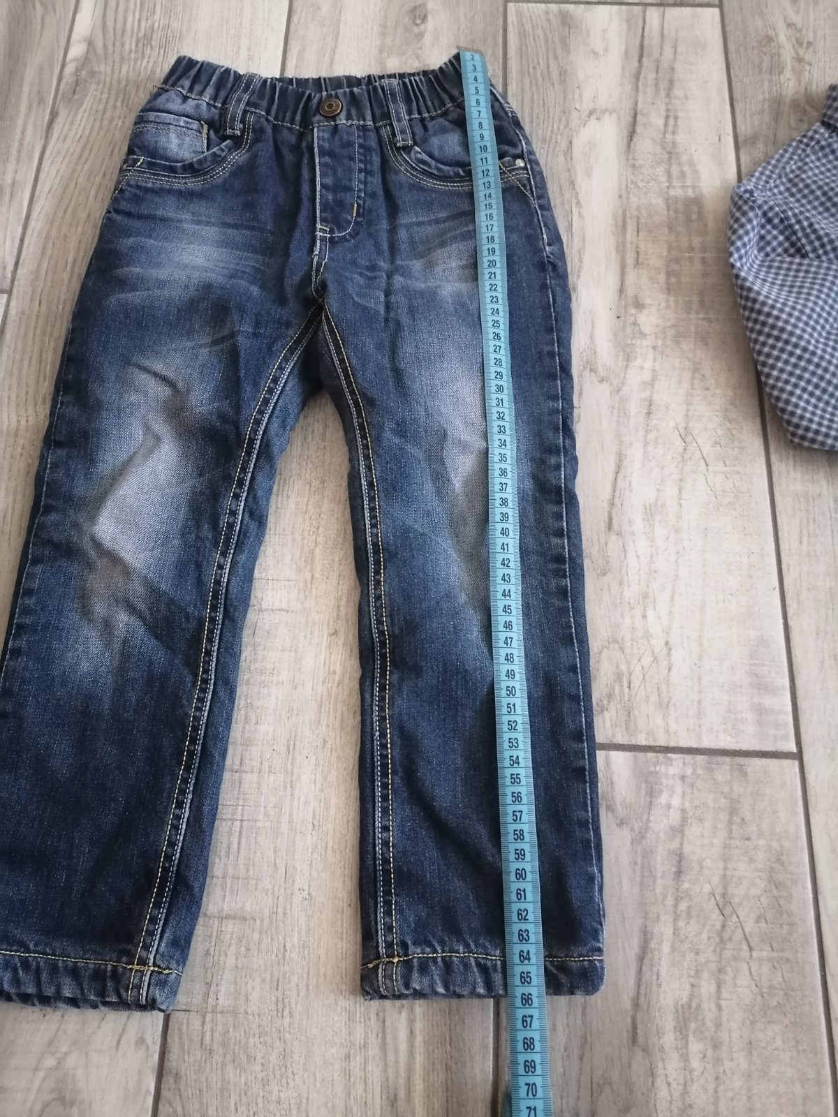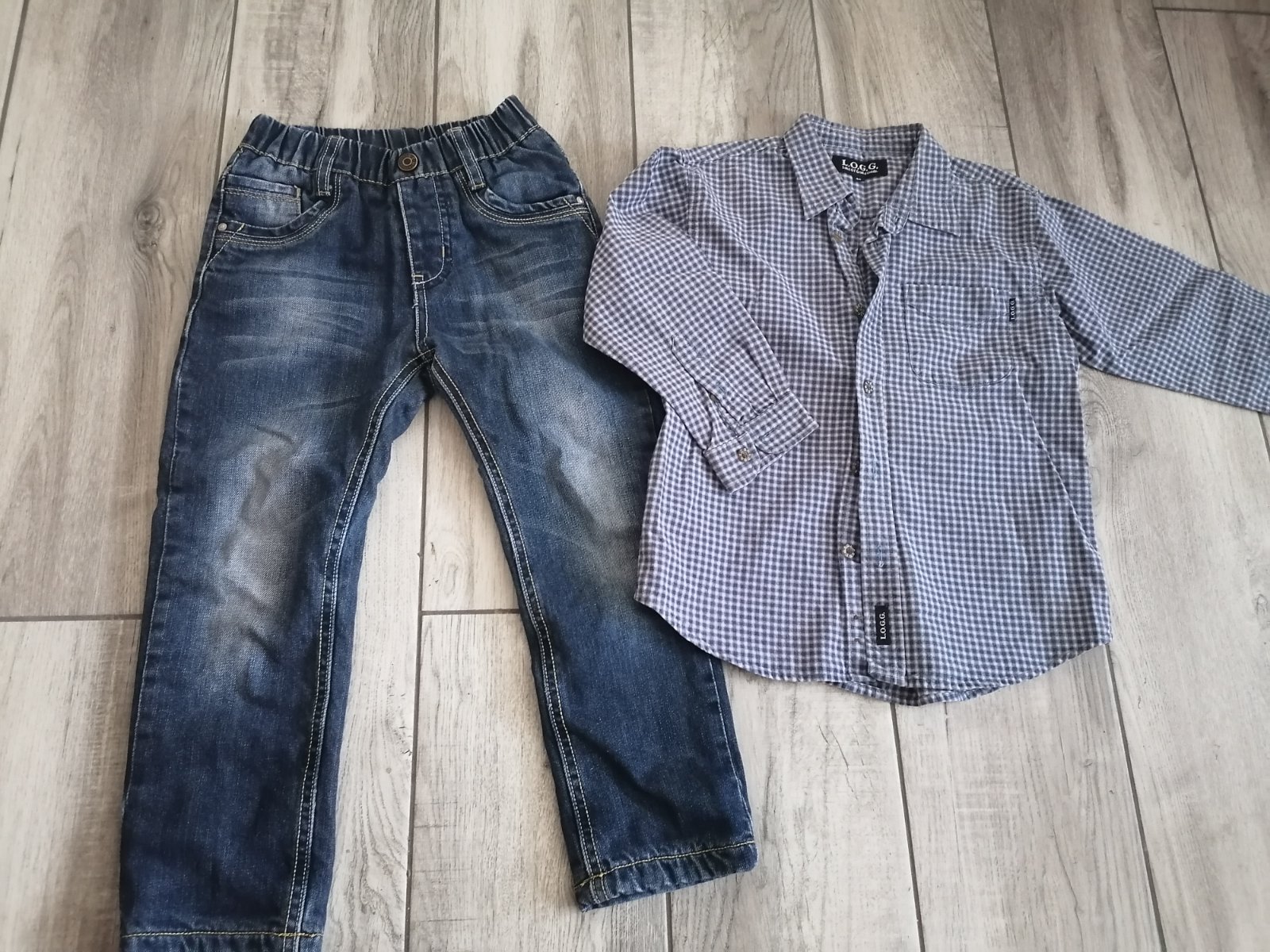 V peknom zachovalom stave. Košielku darujem grátis. 100% bavlna aj rifle, aj košeľa. Super teplé rifle na zimu. 110/116