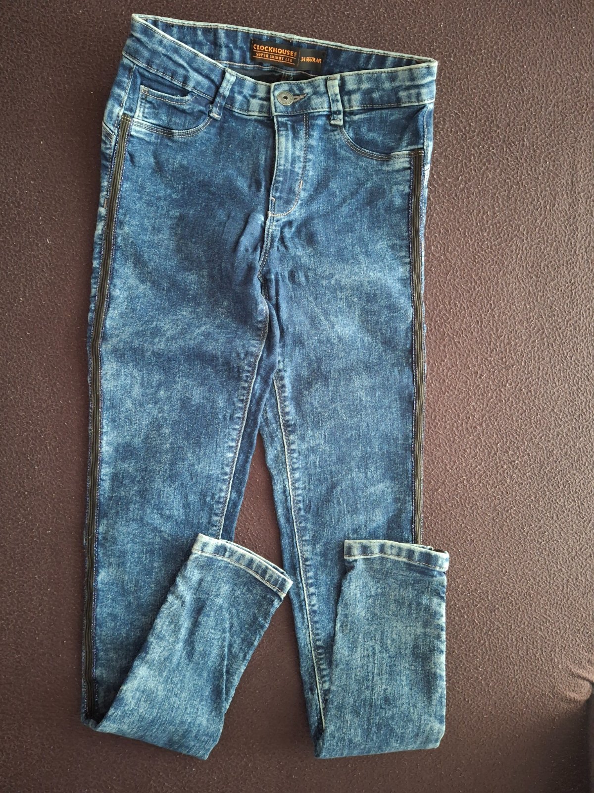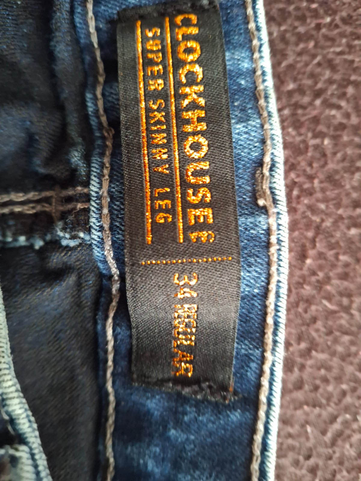 Predám málo nosené elastické rifle veľkosti 34 REGULAR, zn.CLOCKHOUSE C&A, SUPER SKINNY LEG, po bokoch nôh všitý pásik.