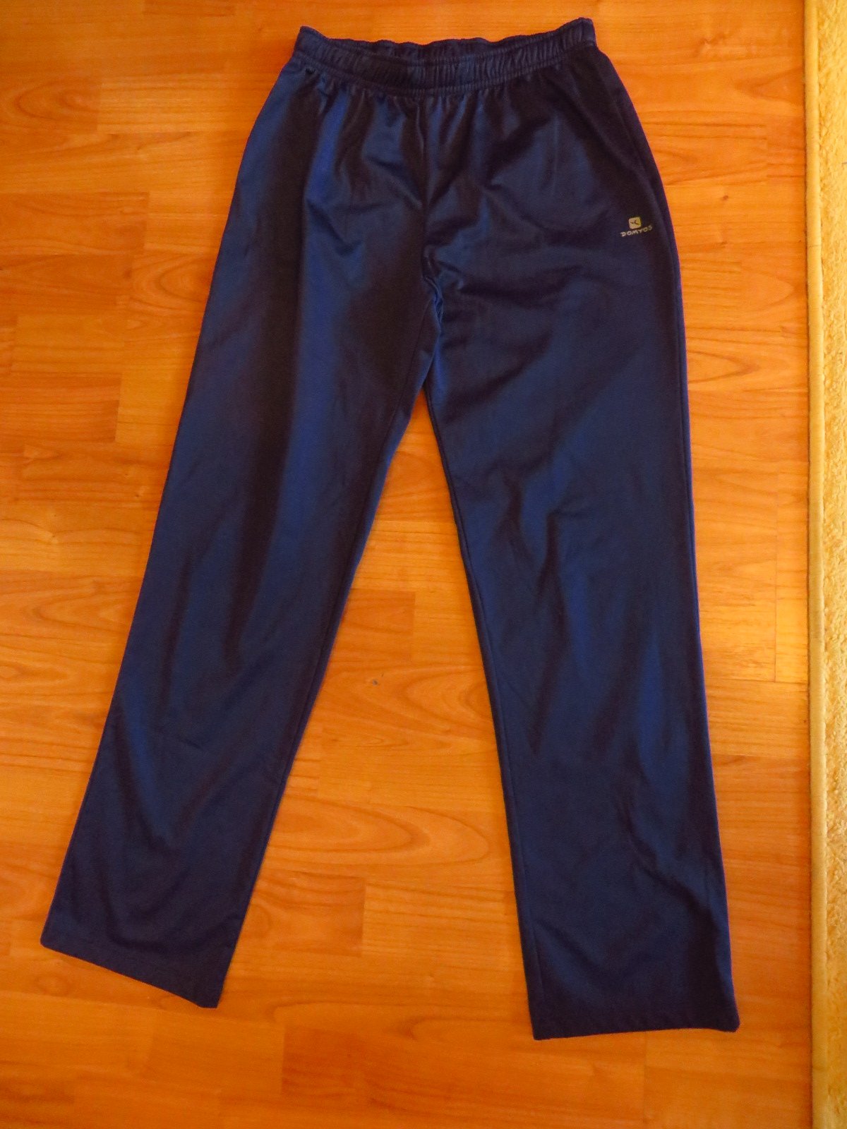 Predám nepoškodené športové nohavice / tepláky, veľkosť je 152, značka Domyos. Materiál je polyester, sú vhodné napr. na tréningy. Celkovú dĺžku majú 93 cm, pás v kľude 66 cm.