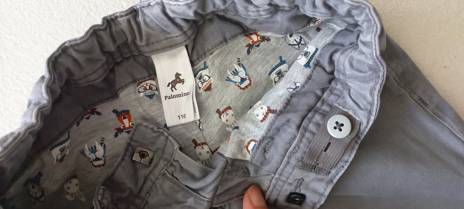 Tmavošedé podšité elegantné nohavice, značka Palomino, veľkosť 116. Rozmery sú na fotkách, zapínanie na háčik, v páse regulácia, 100% bavlna. Párkrát oblečené, nepoškodené. Máme viacero detských vecí, môžete si zostaviť vlastný balíček. Pri kúpe viac vecí zľava.