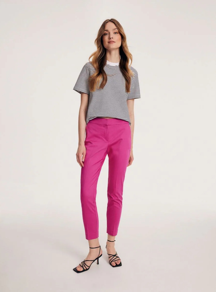 Púdrovo ružové nohavice z nekrčivého materiálu s elastanom v štýle ležérnej elegancie. Vzadu je pevnejšia guma. Sú len vypraté, veľkostne sa mi zdajú menšie ako S. Rozmery na fotkách.