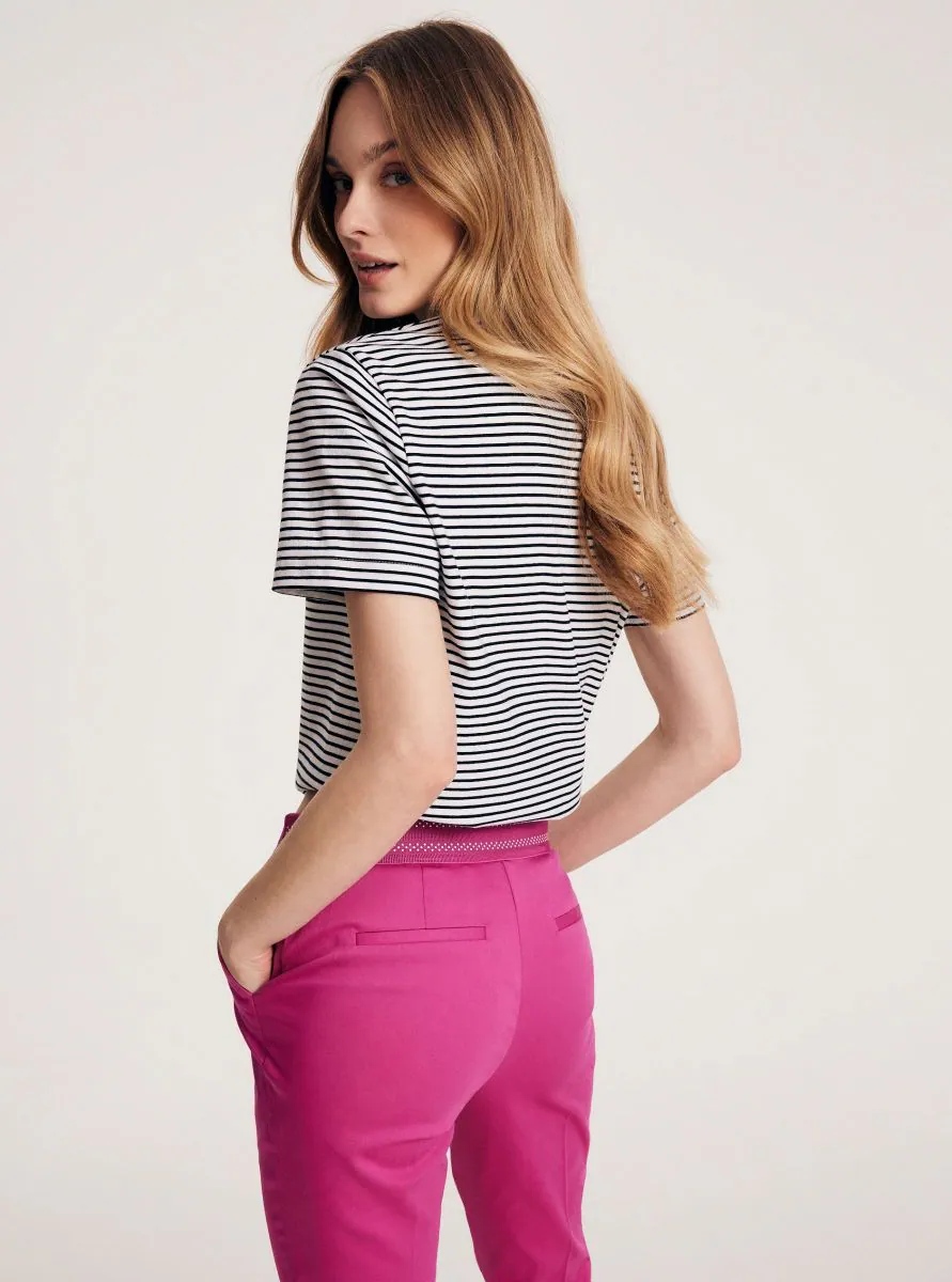 Dámske nohavice. Vhodné na každú príležitosť. Exkluzívne modely. Spestrite si šatník. Krásne tvarujú a prispôsobia sa postave. Majú vyšší pás, ktorý zakrýva bruško. Na zapínanie a zips. Dajú sa nos...