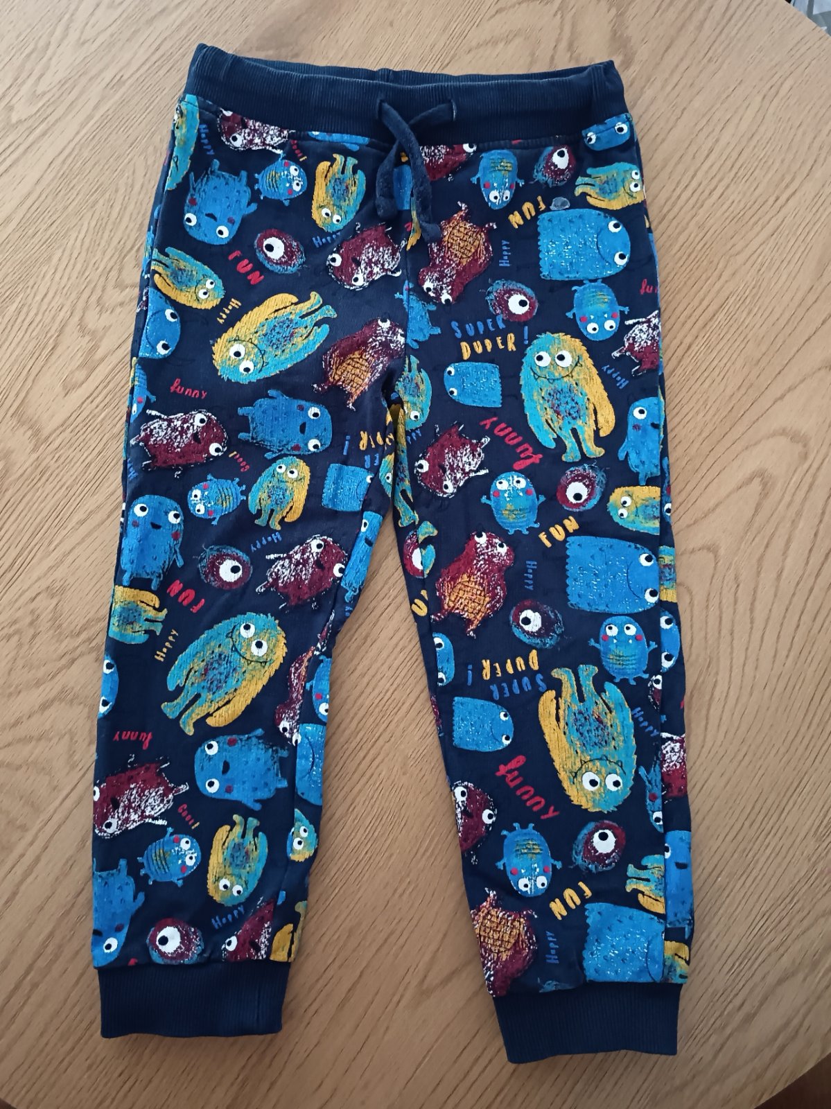 Pekné bavlnené tepláky kľudne aj do škôlky, viď foto. Cena spolu.