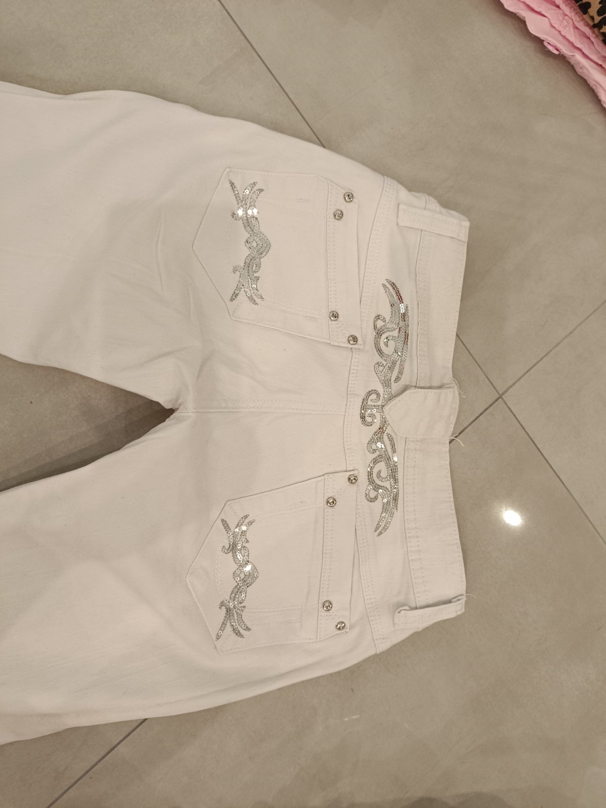 Biele rifle Pieces, velmi prijemny, kvalitny a elasticky material. Nikdy nenosene.