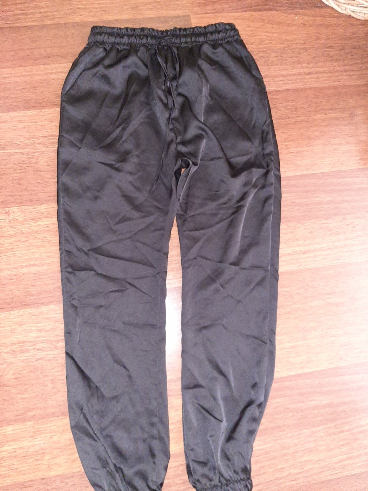 Predán elegantné nohavice veľ.34 dĺžka 96,5. Šírka nohavici 22x2, pás 35x2, sed 25. Látka je lesklá, materiál 70% polyester, 27% viskoza, 3% elastan. Bez poškodenia cena 8€+ poštovné