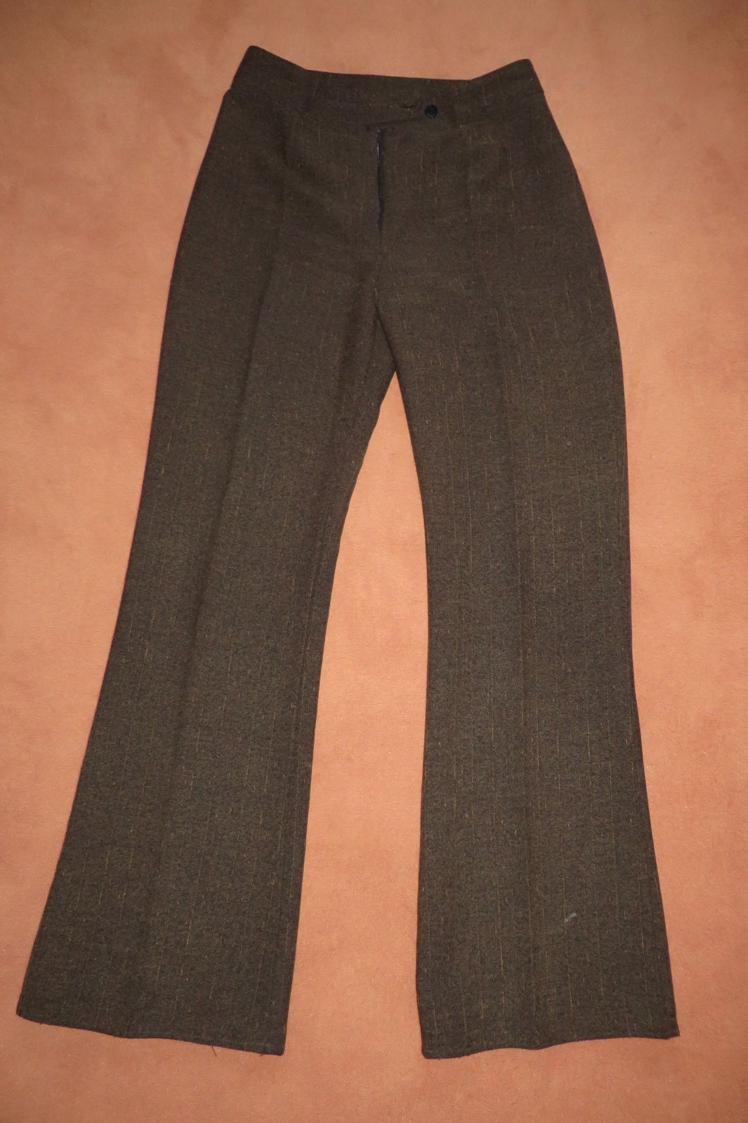 Predám nosené dámske nohavice, veľkosť je M/L. Spodok je mierne zvonovitý, látka je hrubšia, hnedej farby, a májú taký vzhľad fŕkanej tkaniny. Boli kupované v riadnom obchode.