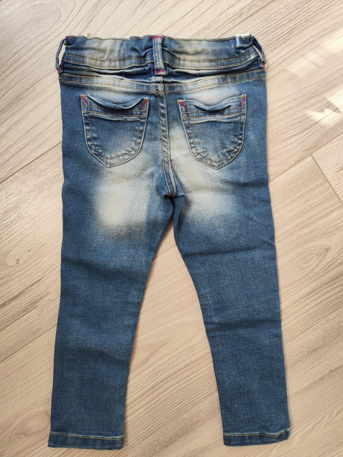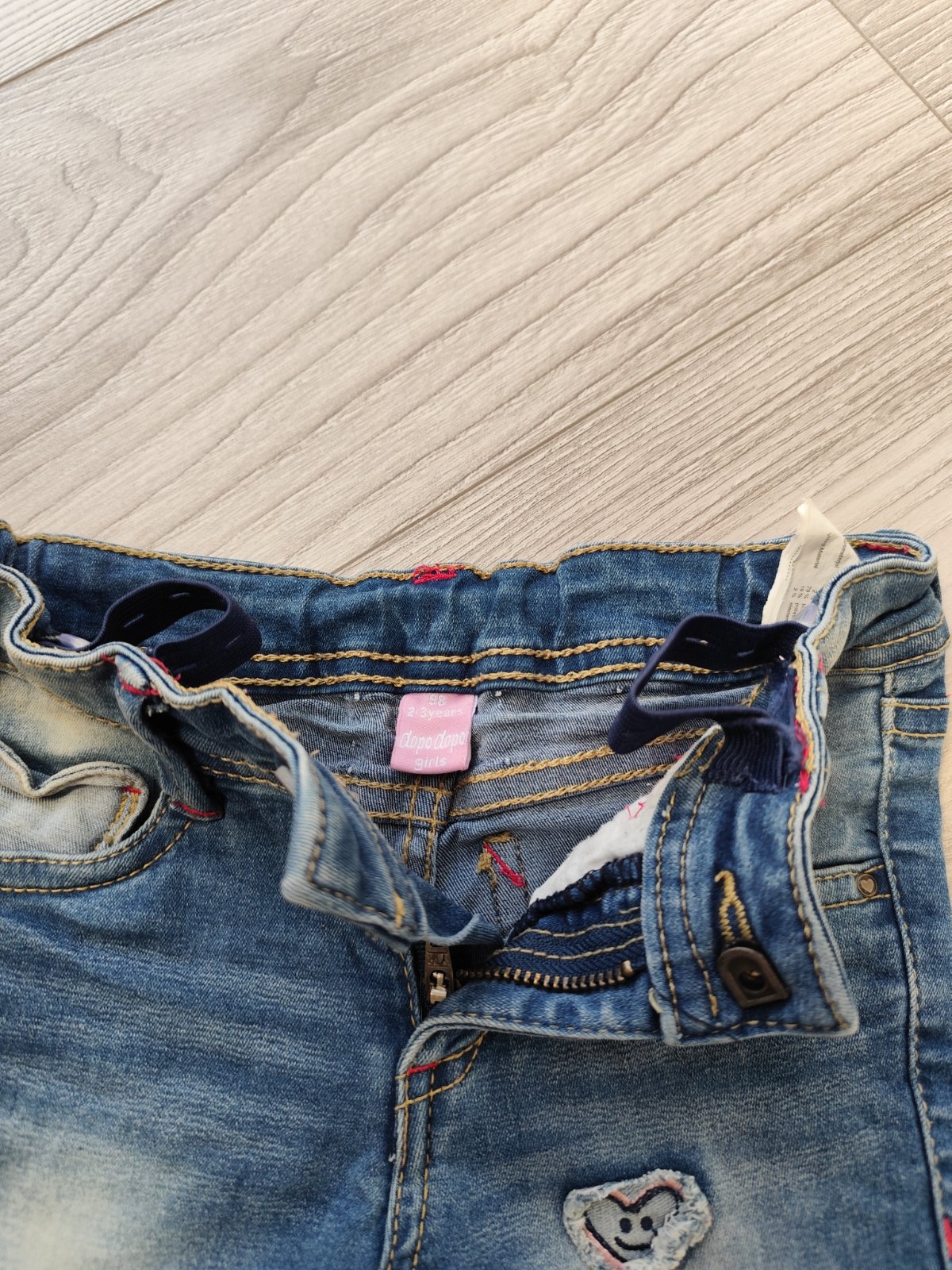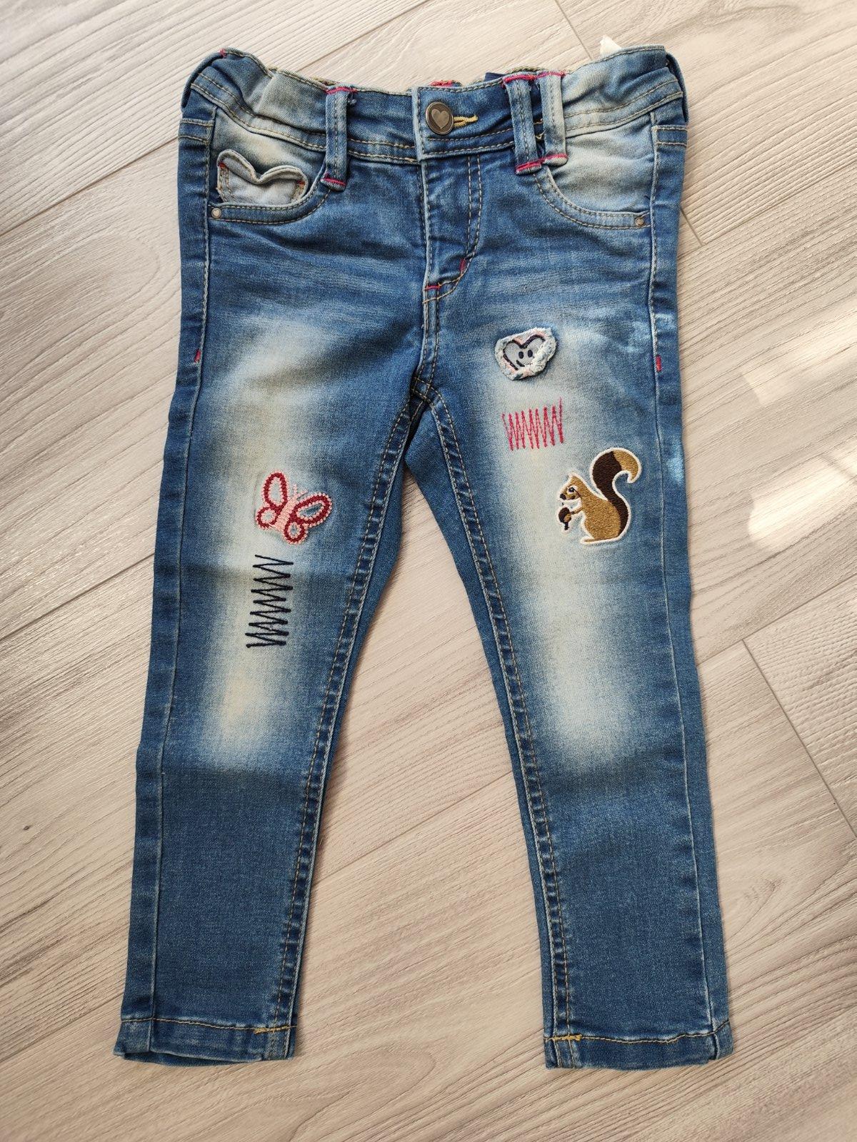 Detske rifle vel 98/104 s aplikaciami, zapinanim na zis, regulovanie v pase na gombik/stahovacia gumicka (vid foto).