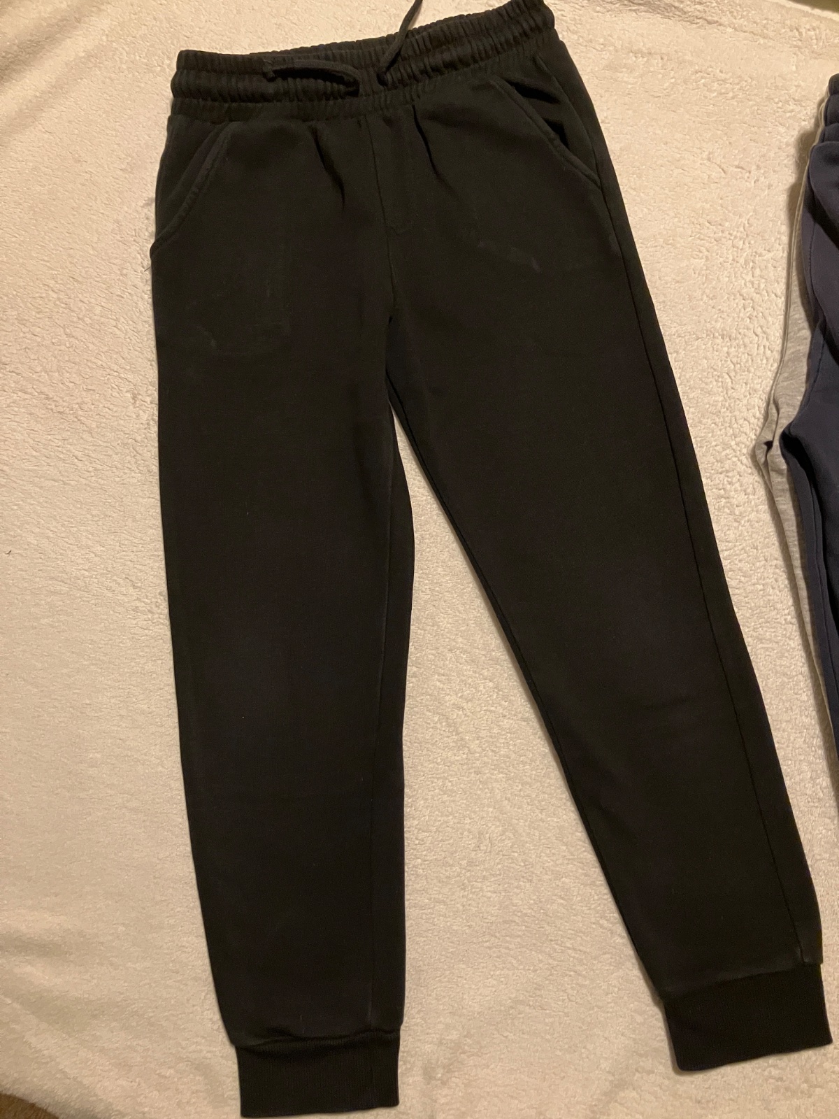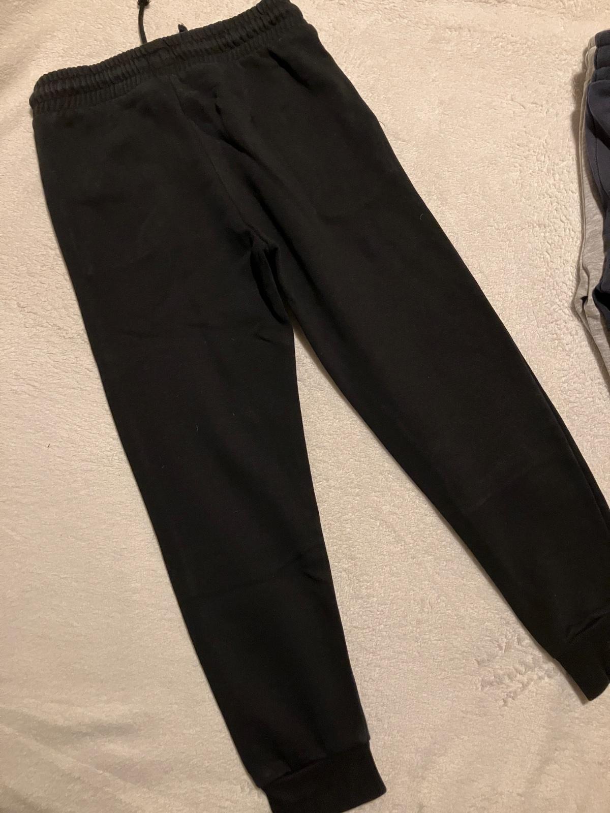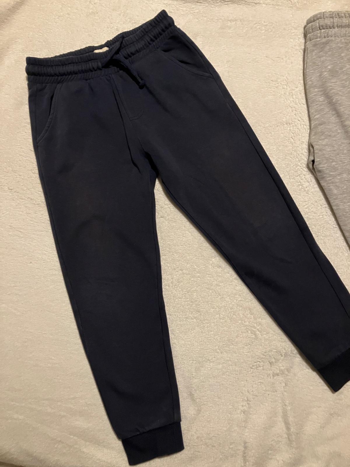 Trojbalenie teplakov zn. F&F, velkost 7-8 rokov, radim skor ako 122, dlzka na foto, v pase funkcna snurka, su hrubsie. Farby cierna, tmavomodra a seda. Sede ako nove, nosene minimalne, tmavomodre a cierne nosene na striedacku, kolena nevysuchane, bez flakov, zmolkov. Predaj aj samostatne. Pri kupe spolu cena 7,- Eur.