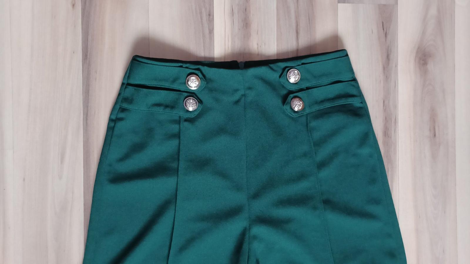 Široké zelené nohavice so zlatými gombíkmi