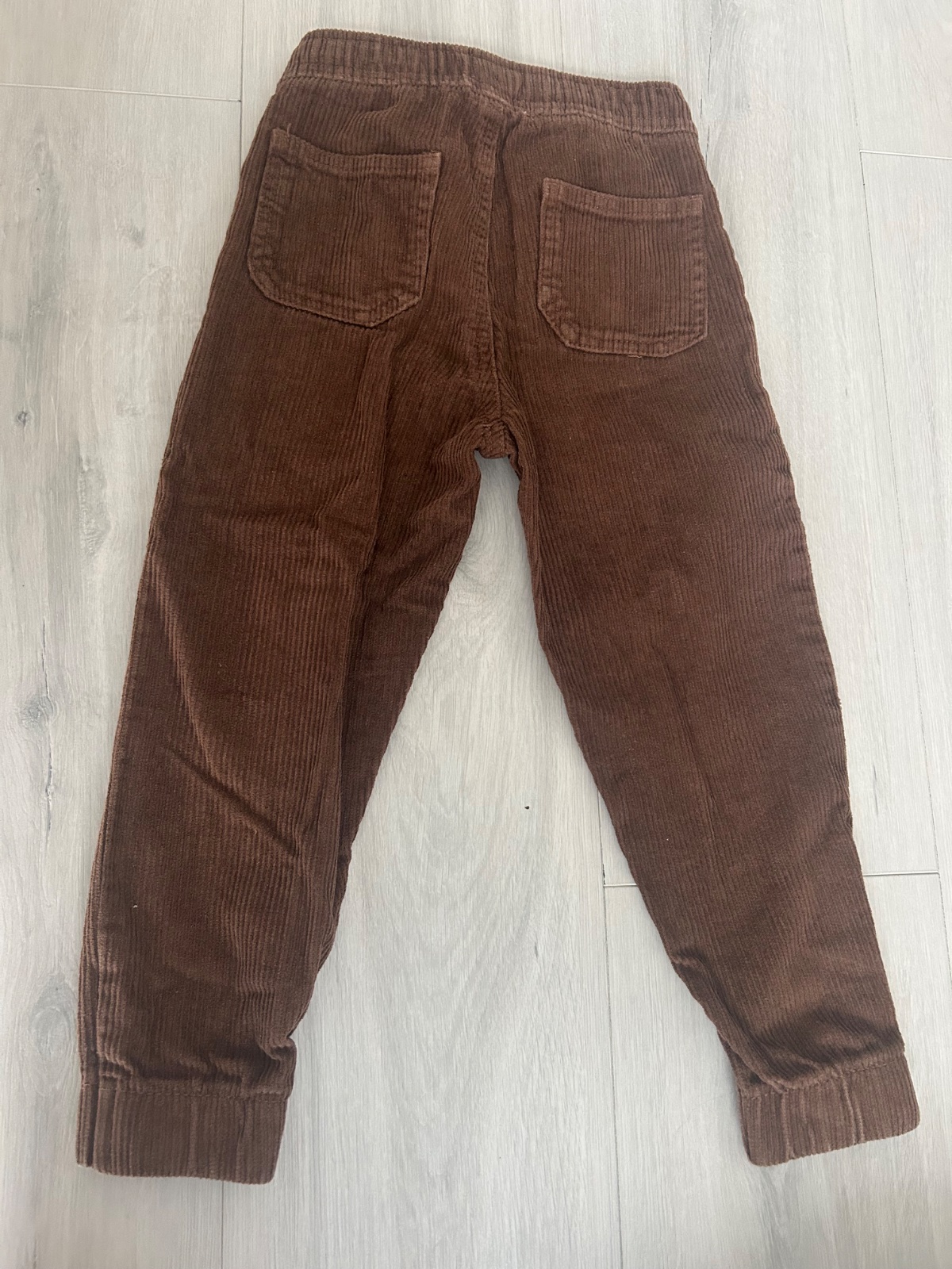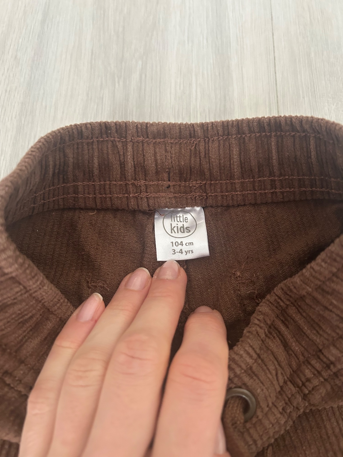 Teple nohavice - hruby menchester - vrecká, guma v páse, patenty. Velkost sedi 3-5 rokov 104.