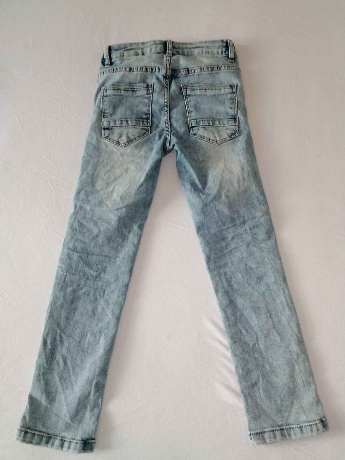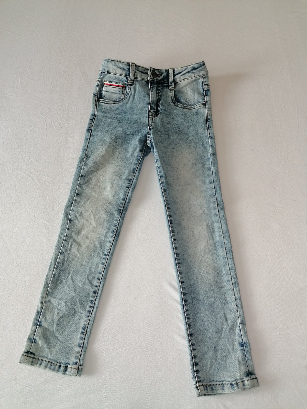 Predám príjemné rifle veľkosť 128. Cvok na zapínanie nám odpadol, ale zapísanie je v poriadku a funkčné. S/ bez poškodenia, ako nové. Cena plus poštovné