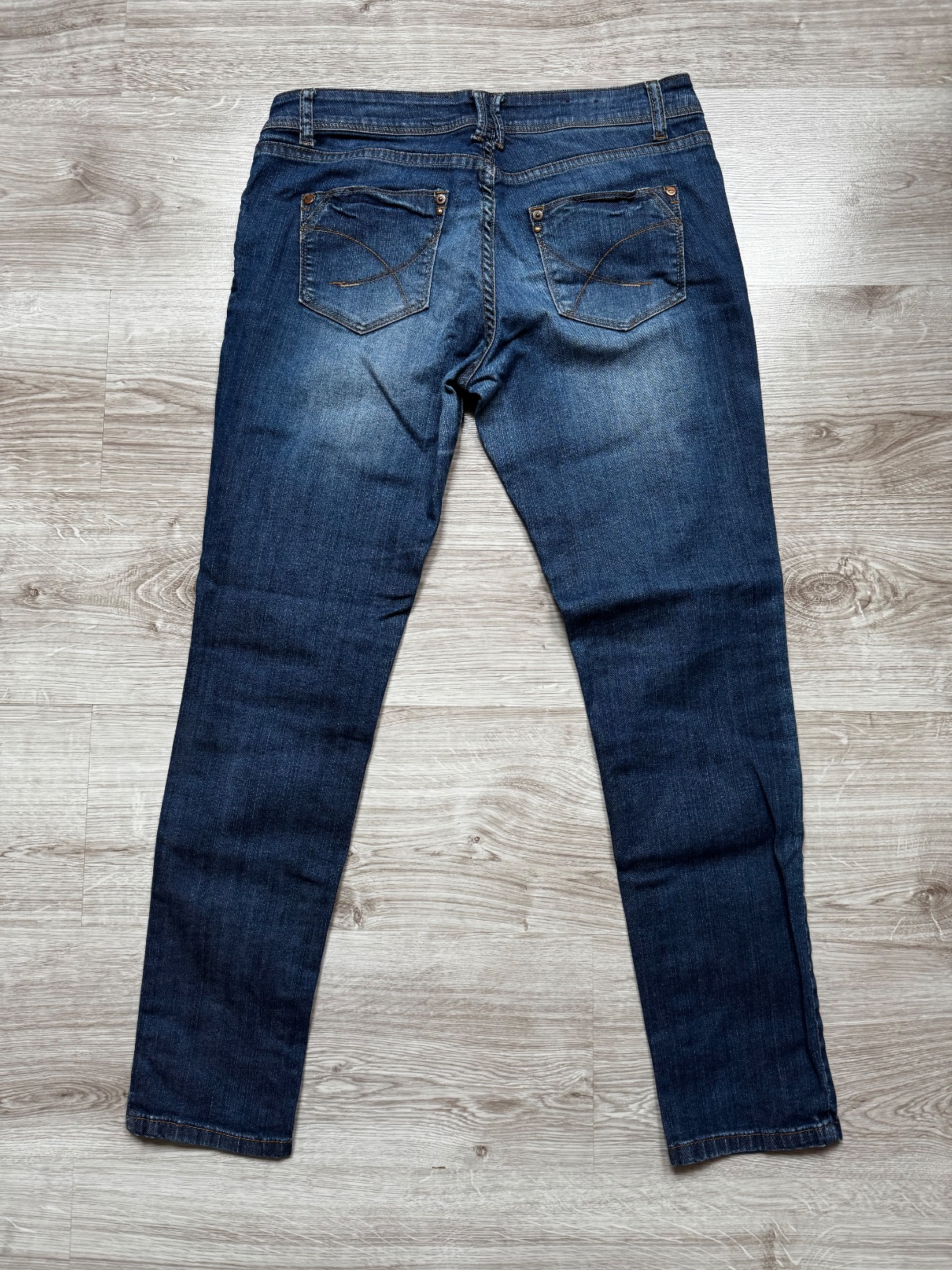 Pouzite, Motivy jeans, na spodku nohavice uvolnujuci zipsik, elasticke, pas 45 elast, dlzka 103 cm, cena 12 plus posta