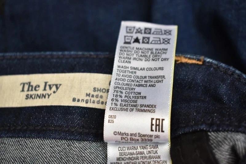 Dámske skinny džínsy sú obľúbeným a moderným kúskom oblečenia, ktorý vďaka svojmu priliehavému strihu dokonale zvýrazňuje ženské krivky a opticky predlžuje postavu. Tieto konkrétne džínsy na foto sú tmavomodré s mierne vypraným efektom a vysokým pásom. Skinny fit (veľmi úzky strih) Jemné ošúchanie a nedokončené spodné okraje