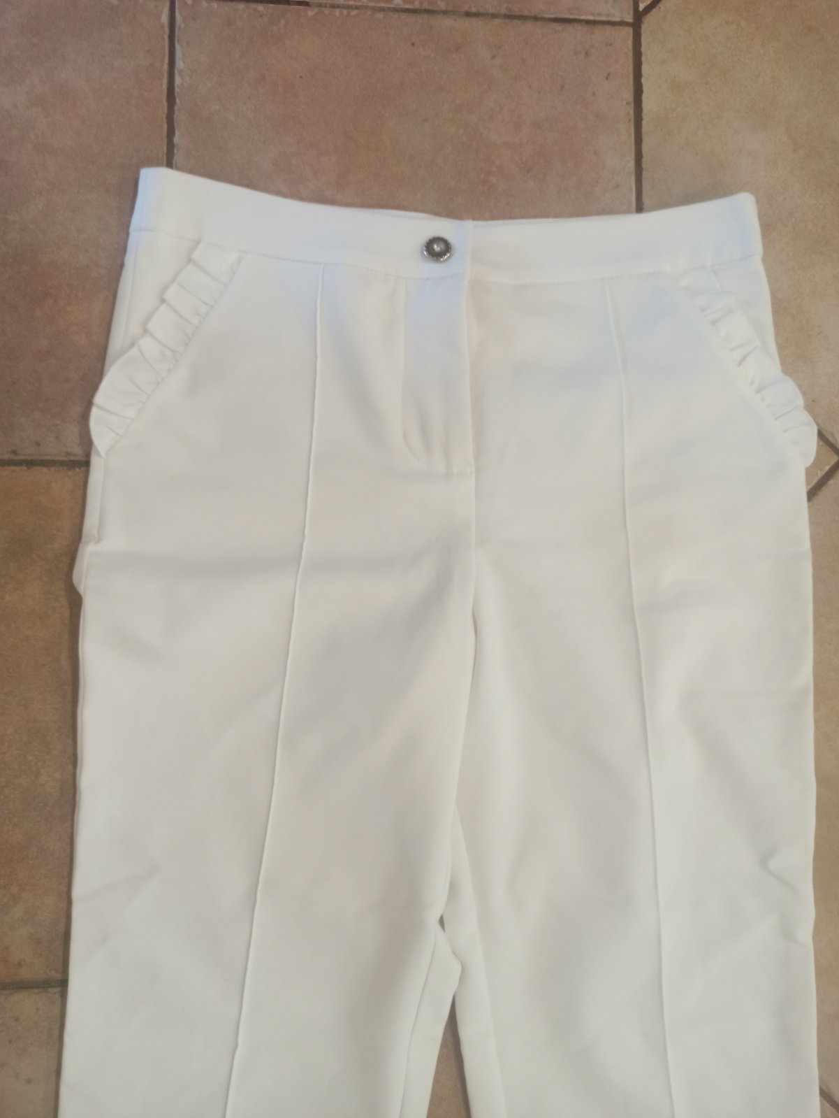 predám nohavice, málo nosené, ale sú stále pekné biele, bez fľakov, látka je kvalitná, je zospodu hladká a zvrchu taká hebká ako zamatová, na požiadanie premeriam...