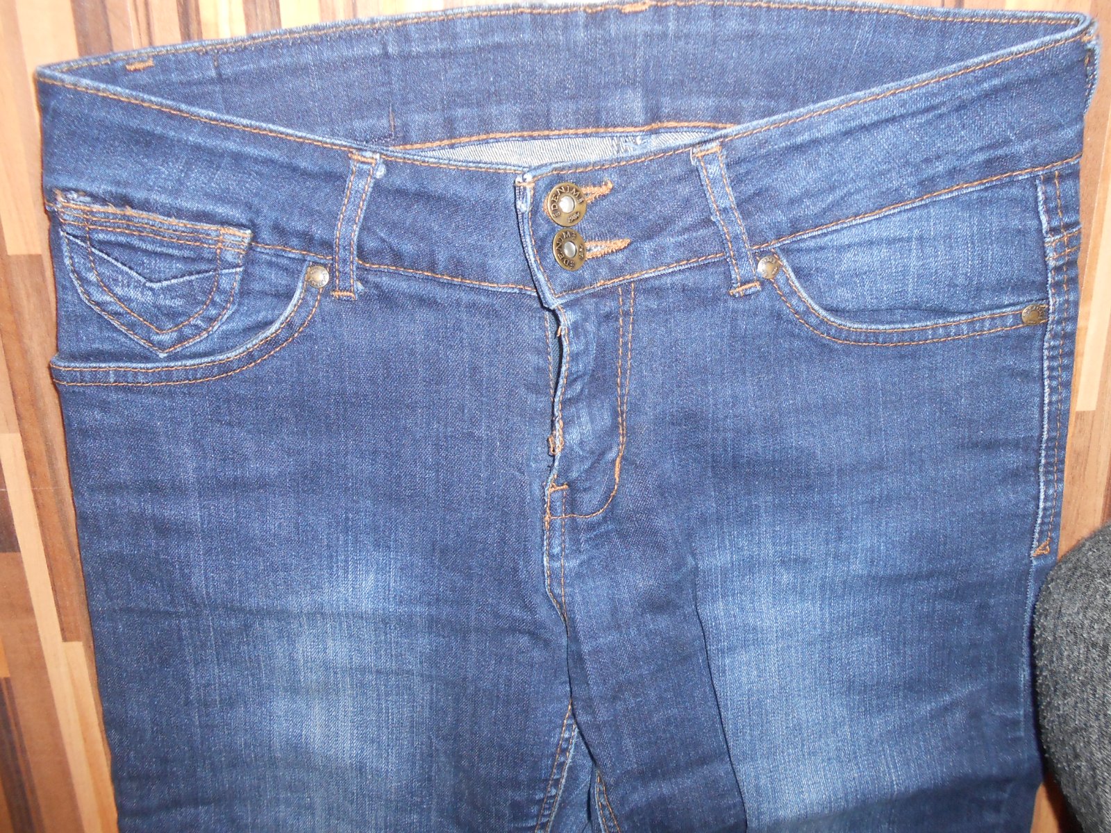 Rifle dámske, veľkosť 38, značka F&F, vo výbornom stave, vyšúchané boli odnova, žiadne diery, fľaky, žmolky, spodok riflí nevyšúchaný, dĺžka 106 cm, šírka pásu 40cm x 2, šírka bokov 46,5 x 2, bavlna + elastan, cena + poštovné. (B)