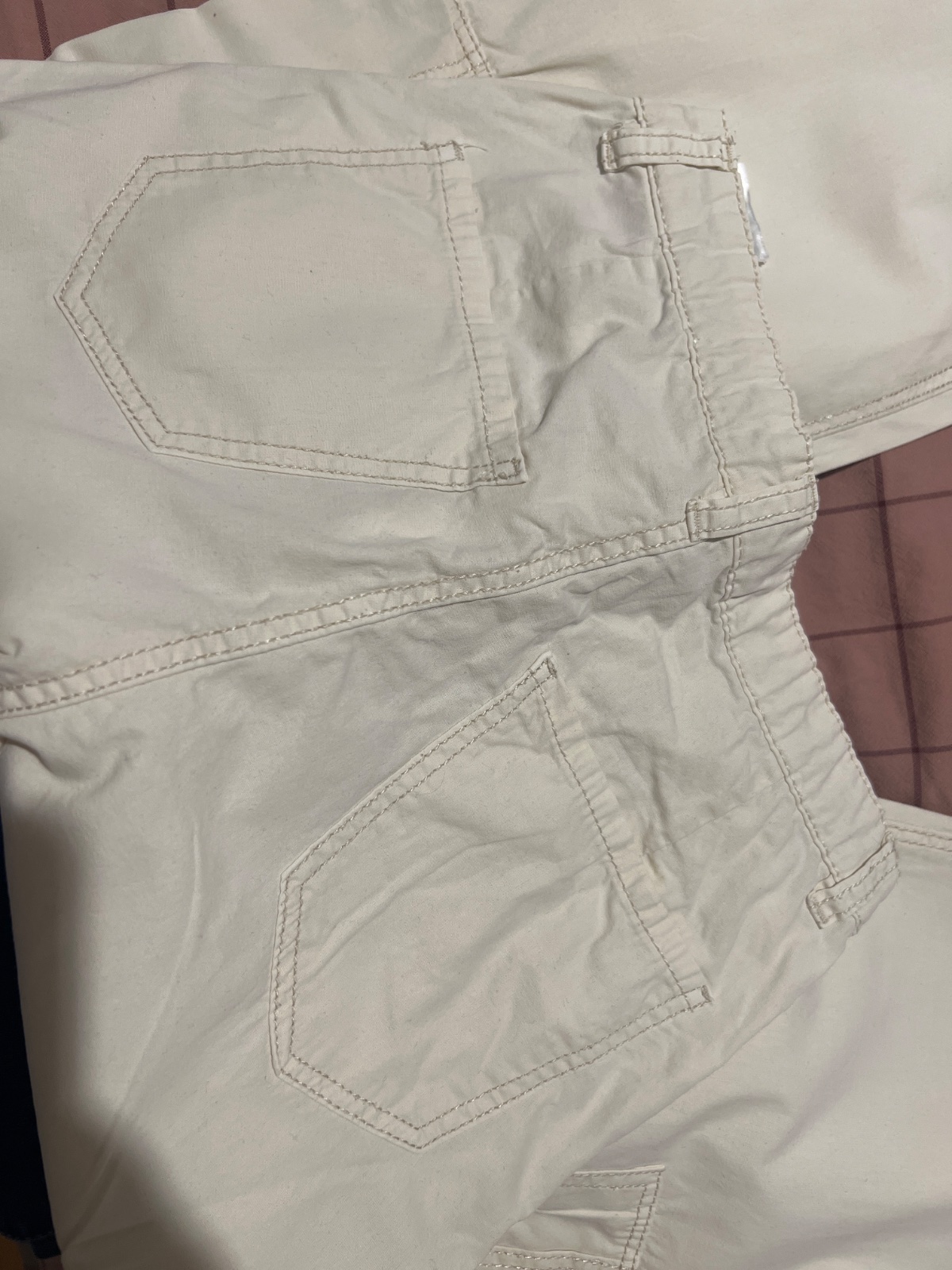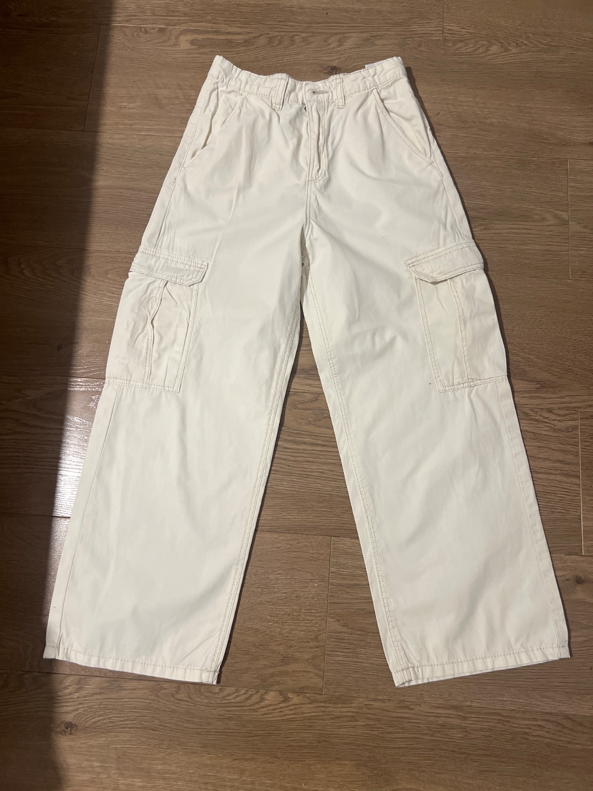 nohavice s vreckami, oblečené raz. Nie su vhodne na zimu ale na jar, leto, teplejšiu jeseň