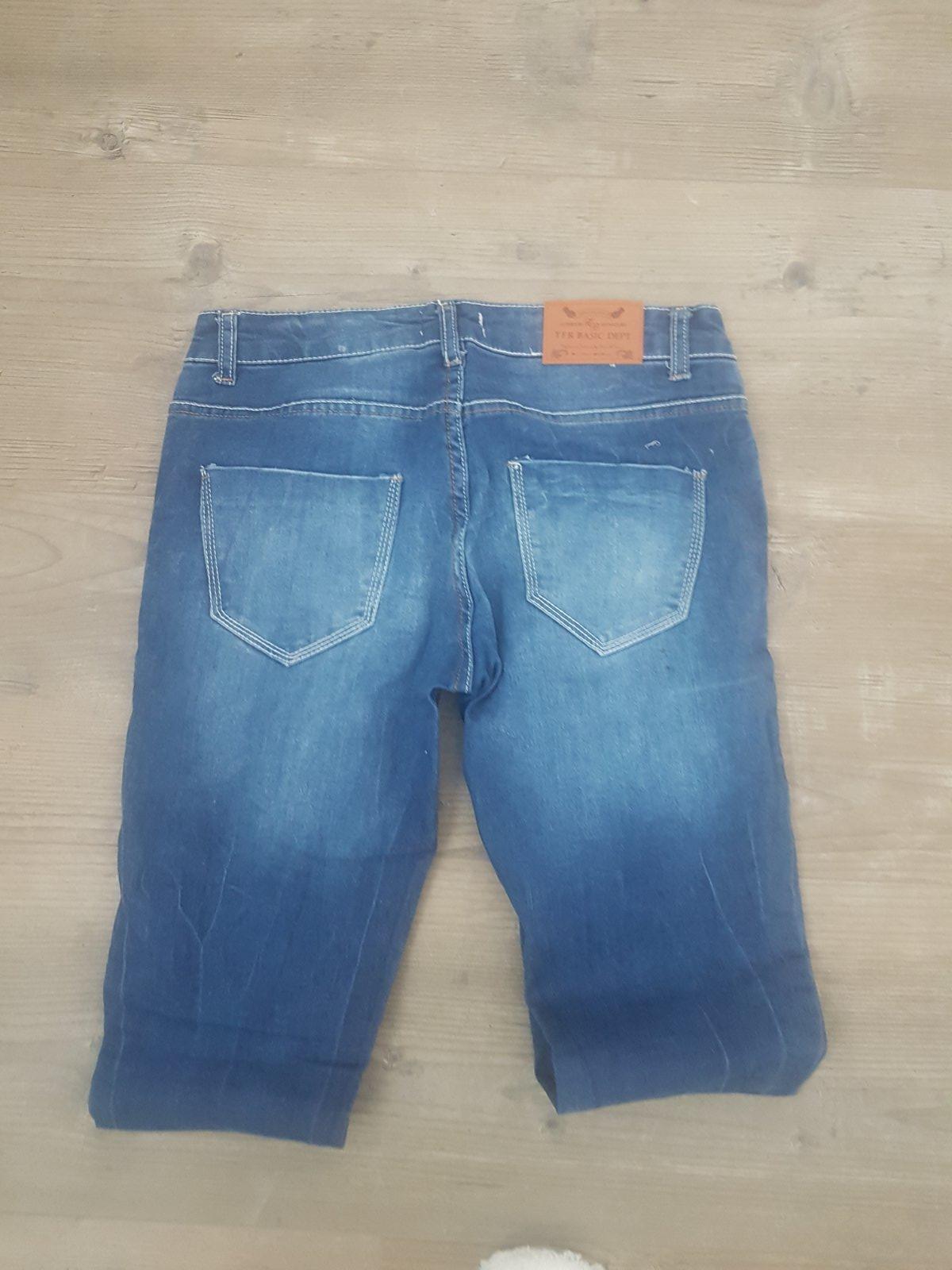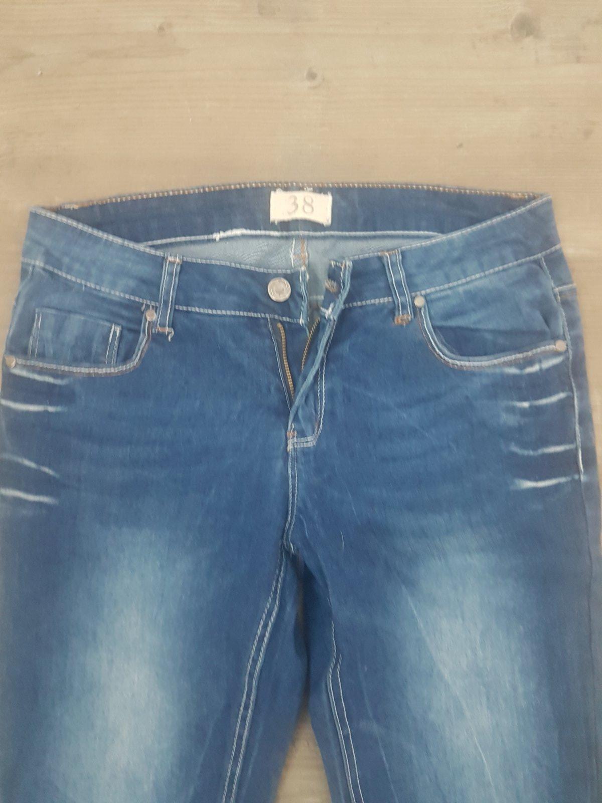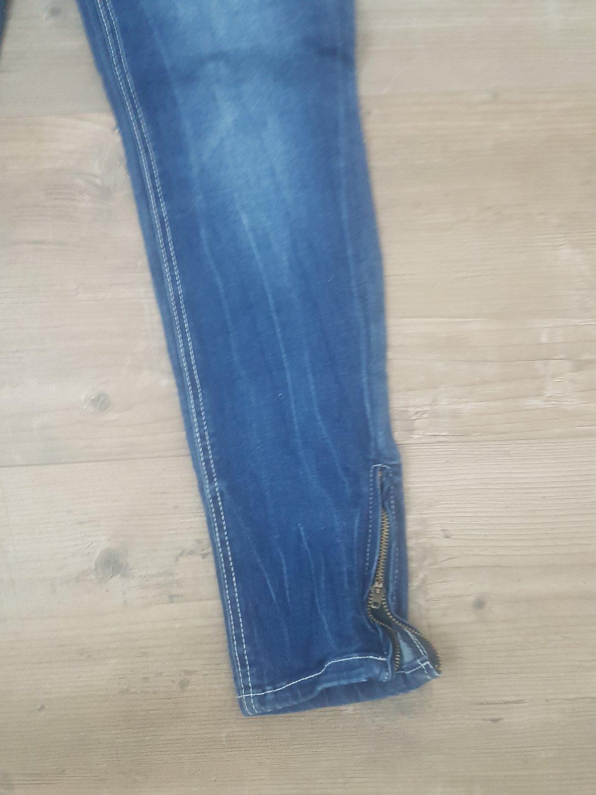 krasne plne elasicke rifle z makkuckej rifloviny. 1 krat oblecene . uzky strih, klasicky pas.