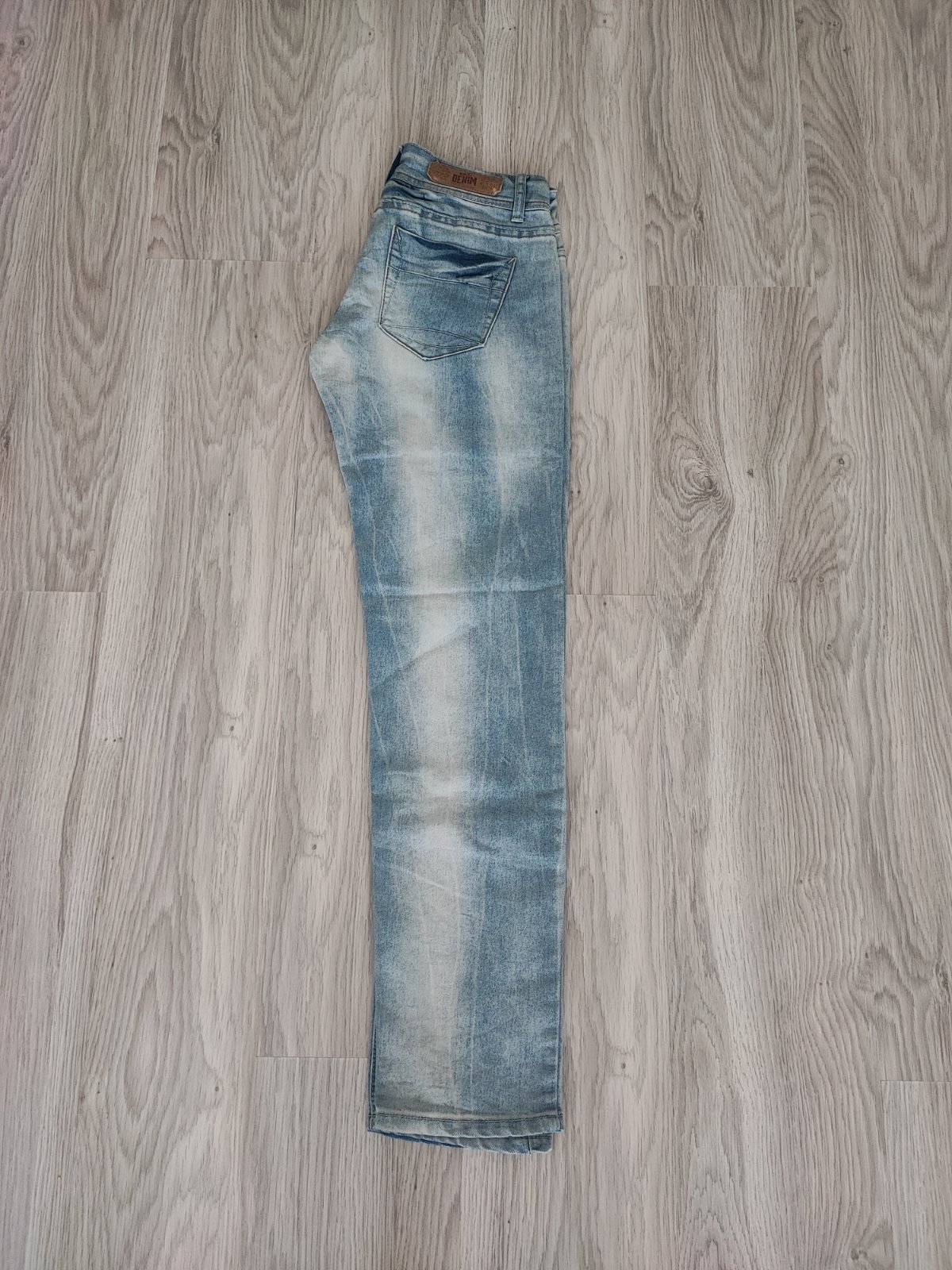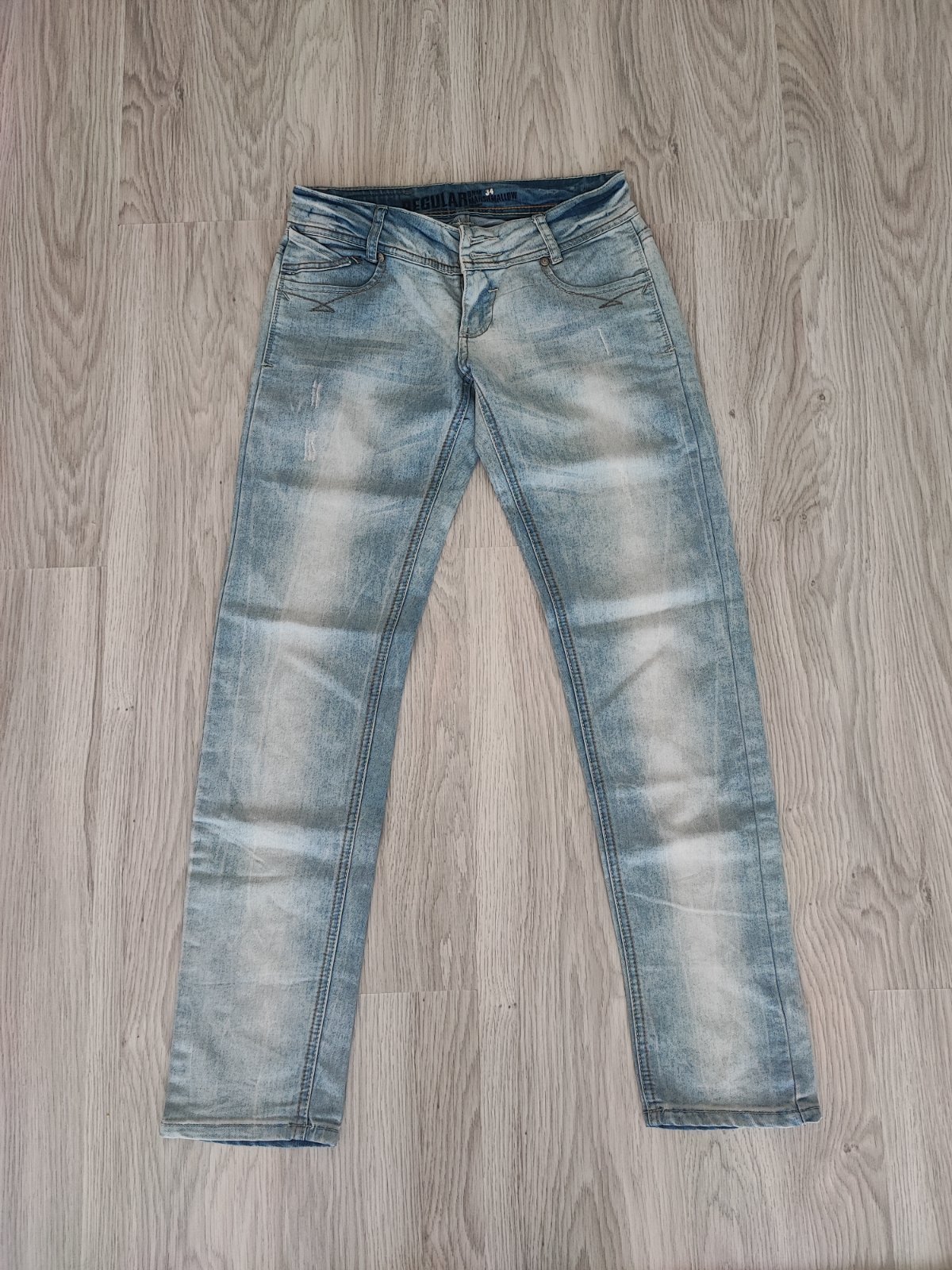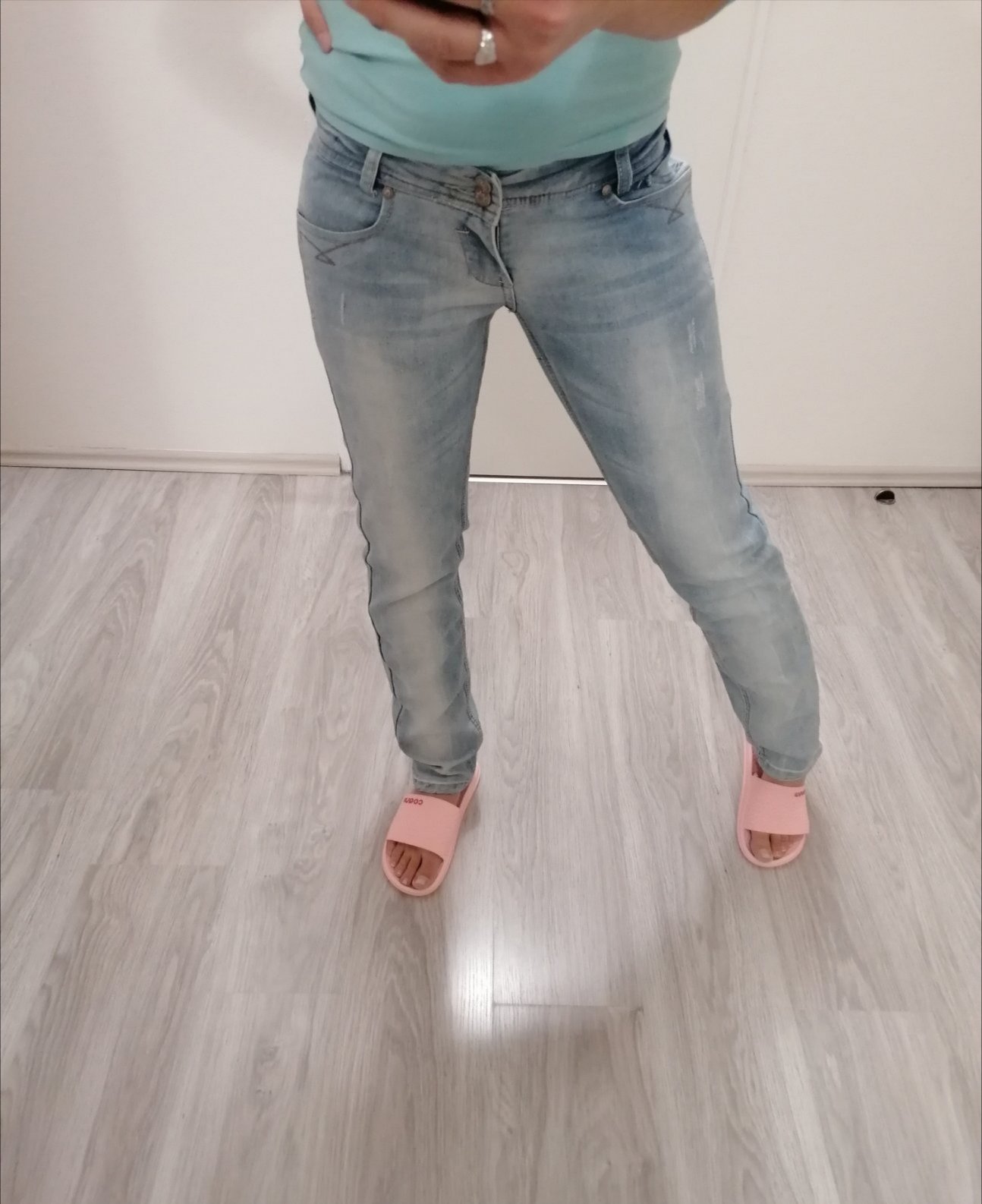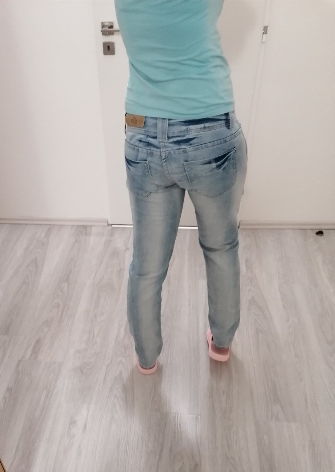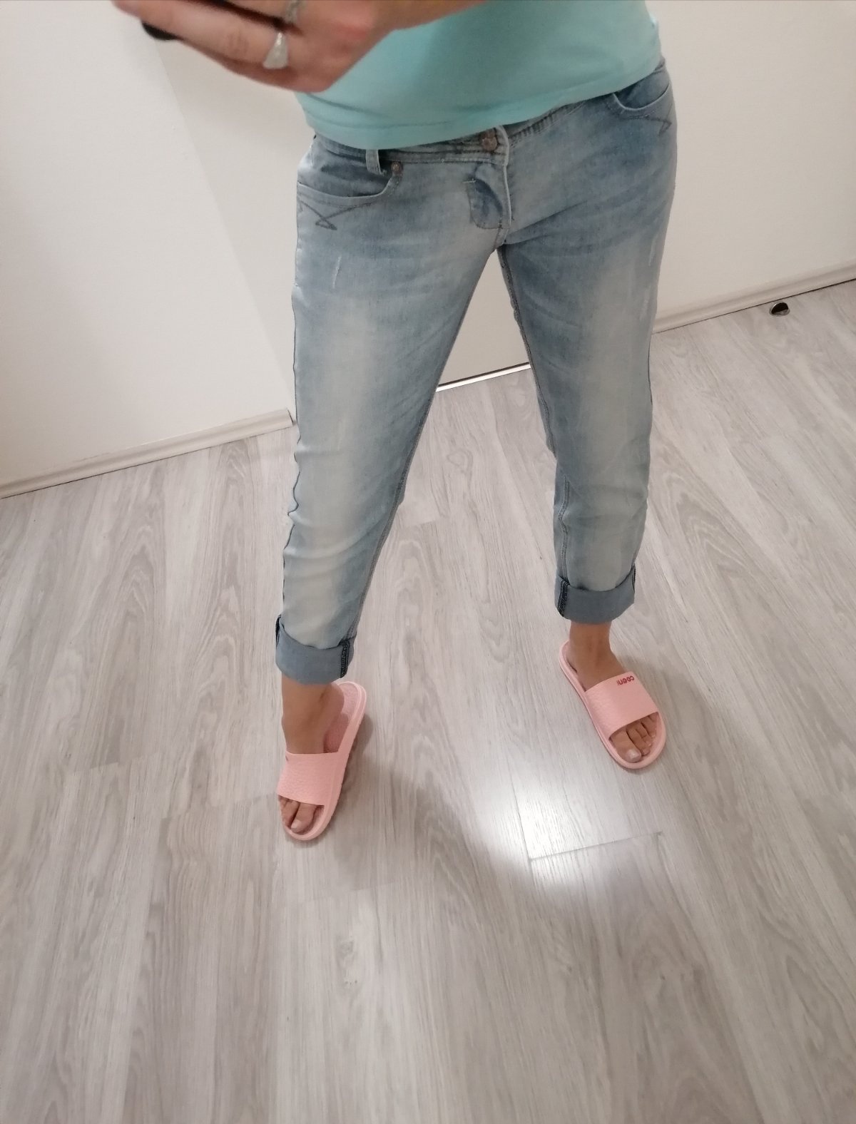 Predám rifle veľkosť je uvedená 34 ale oblečie S a menšie M. Rozmery su pas 2x 39cm a dĺžka 102cm. Krásna bledo modrá farba