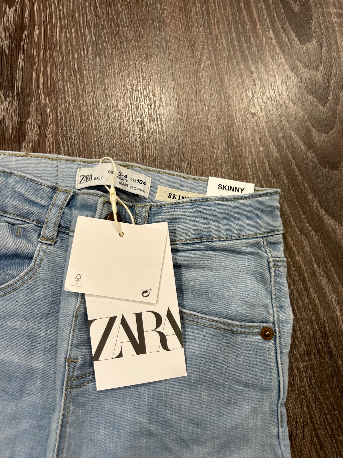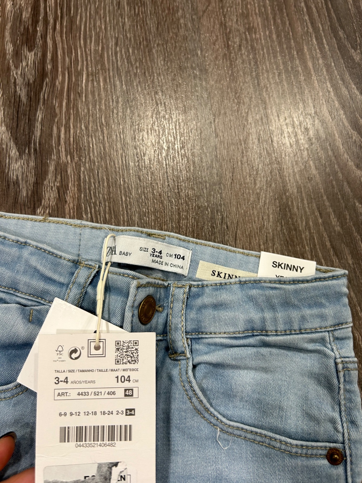 79.Zara nove detske skinny rifle vo velkosti 3-4 roky,dlzka je 58cm ,v pase je stahovacia gumka a sirka je od 25x2cm do 28x2cm