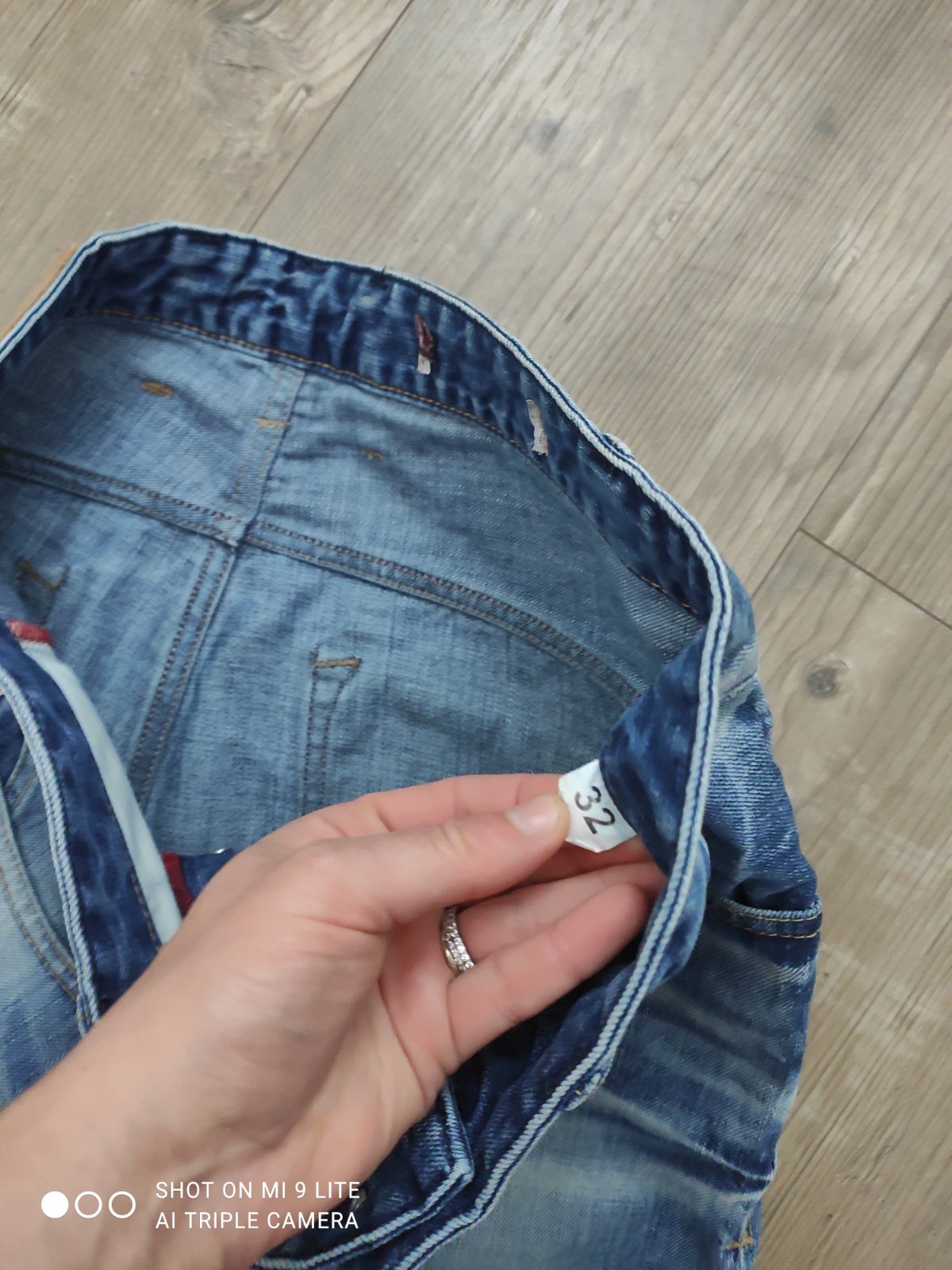 nosene modre rifle s velkou dierou na kolene. rifle boli kupovane ako panske , no nosila som ich ako damske lezerneho strihu. neviem o aku znacku sa jedna, visacku som odstrihla lebo ma skrela. velkost pisana 32, ja som ich nosila na velkosti M ako volnejsie,