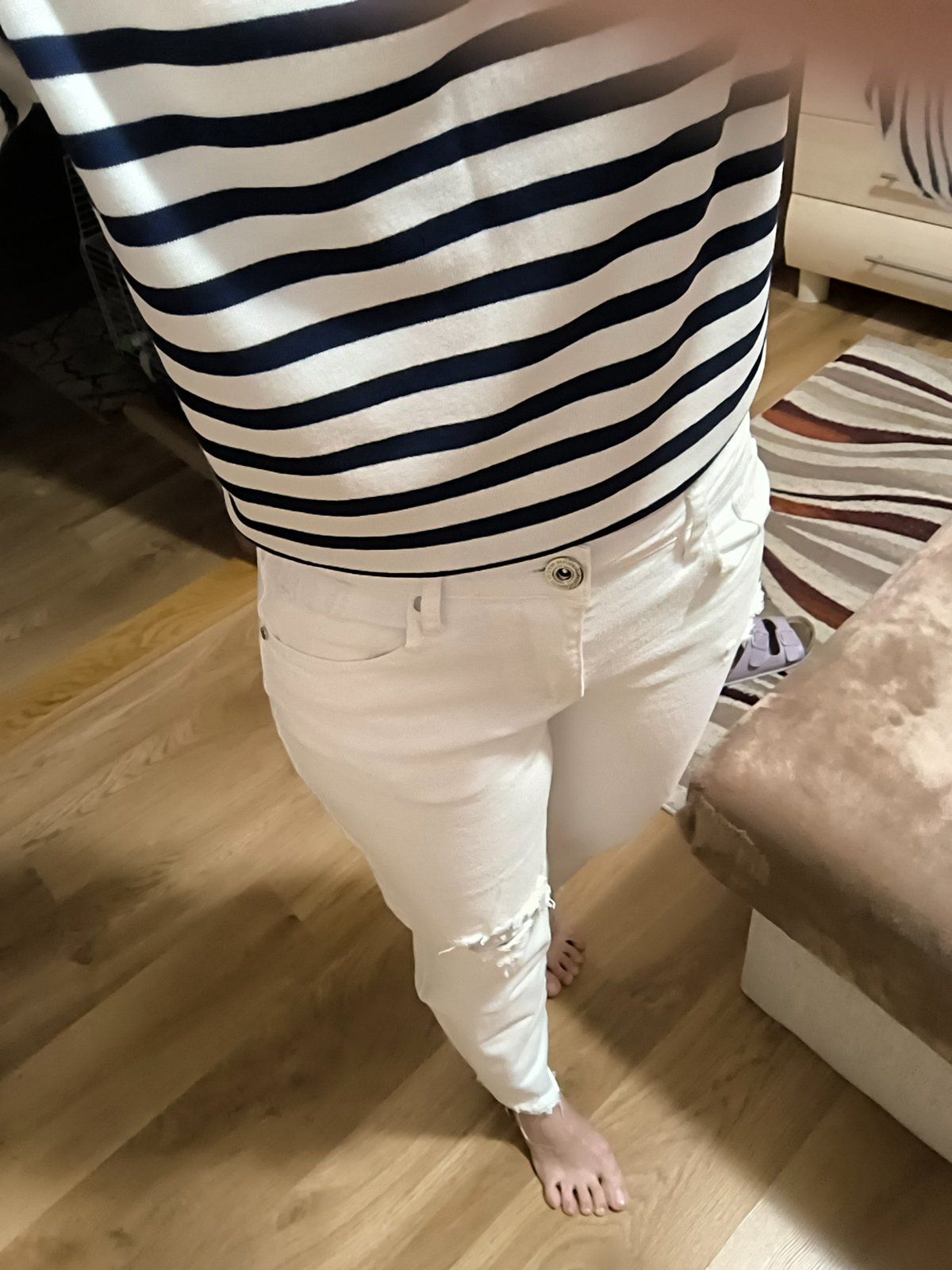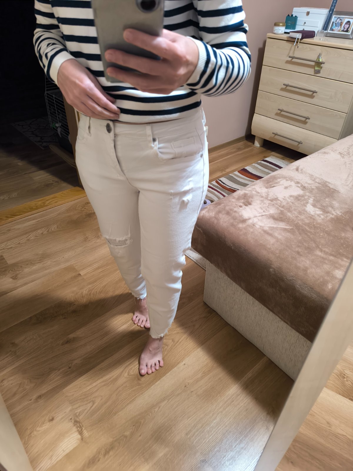 Úplne nové rifle, ani raz oblečené, ešte neboli ani opraté, mierne strečové. Boli kupované ako 7/8, ale ja som nízka, takže môžu byť aj ako dlhé.