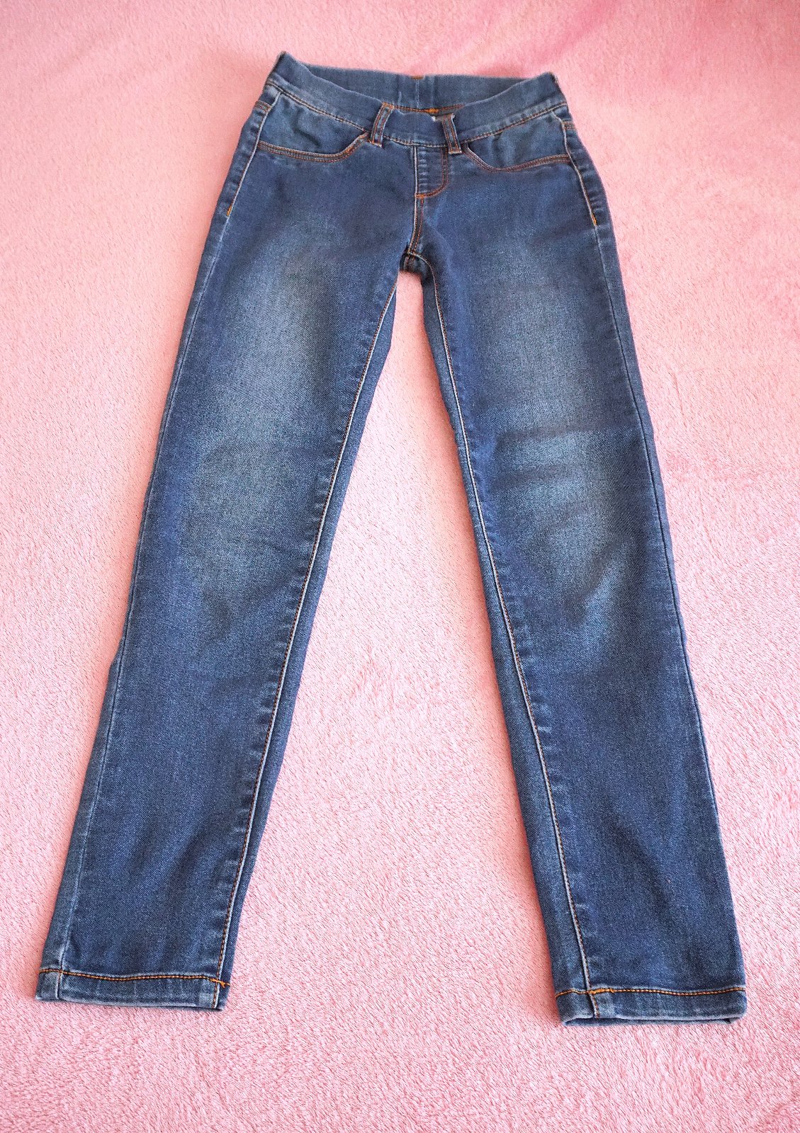 Krásne tmavomodré úzke legínové rifle veľkosti 140, značky Pageone. Veľmi mäkké a pohodlné. Ako nové. Takmer nenosené. Dĺžka od rozkroku 64 cm, celková dĺžka 86 cm.