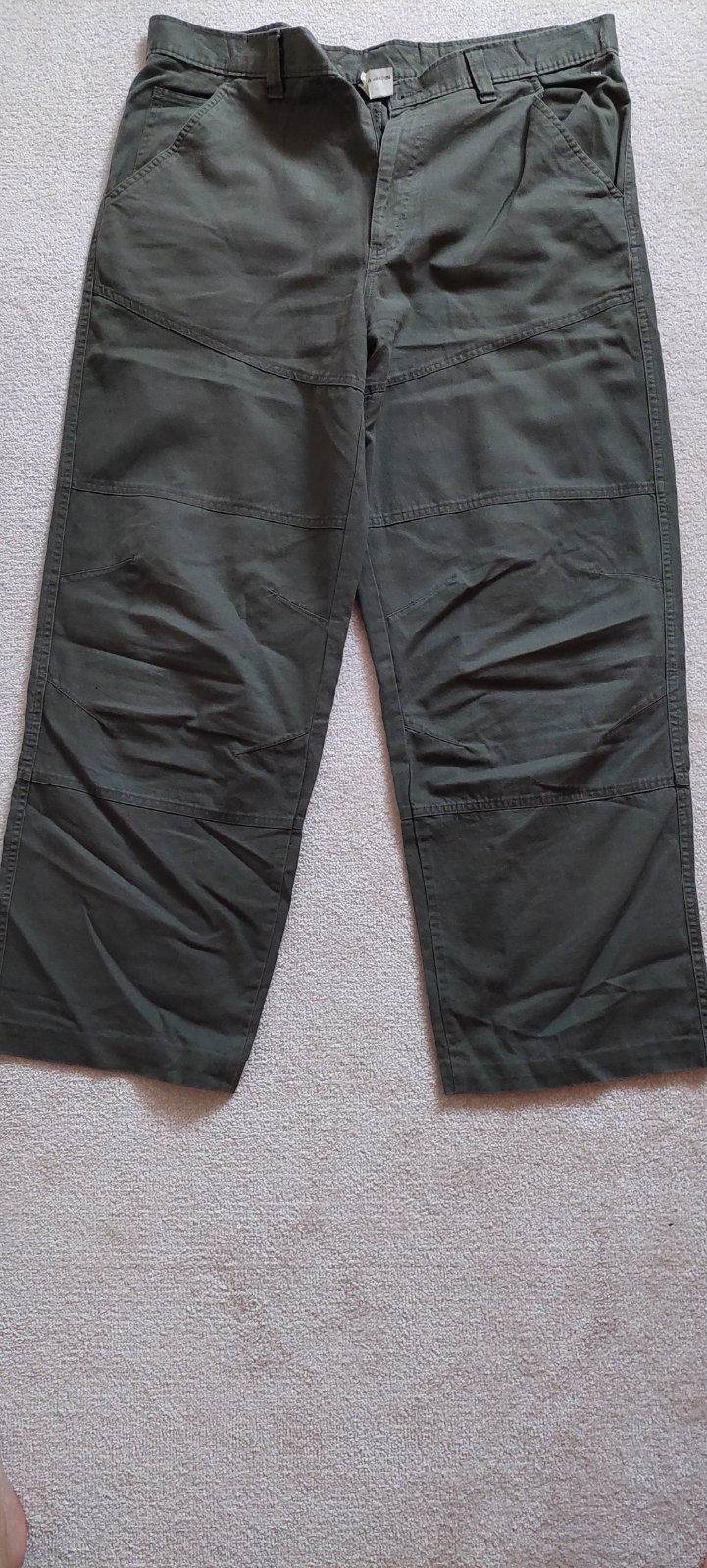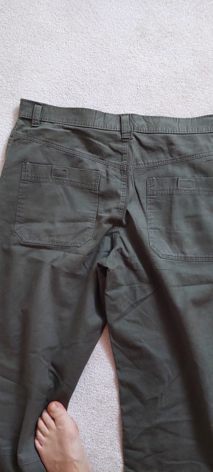 Zelené 100 cm v pase, 103 + 4 cm pás, vnútorná dlzka 77 cm , siroké 66 cm obvod cez stehno. 100% bavlna stredne hrubý materiál,