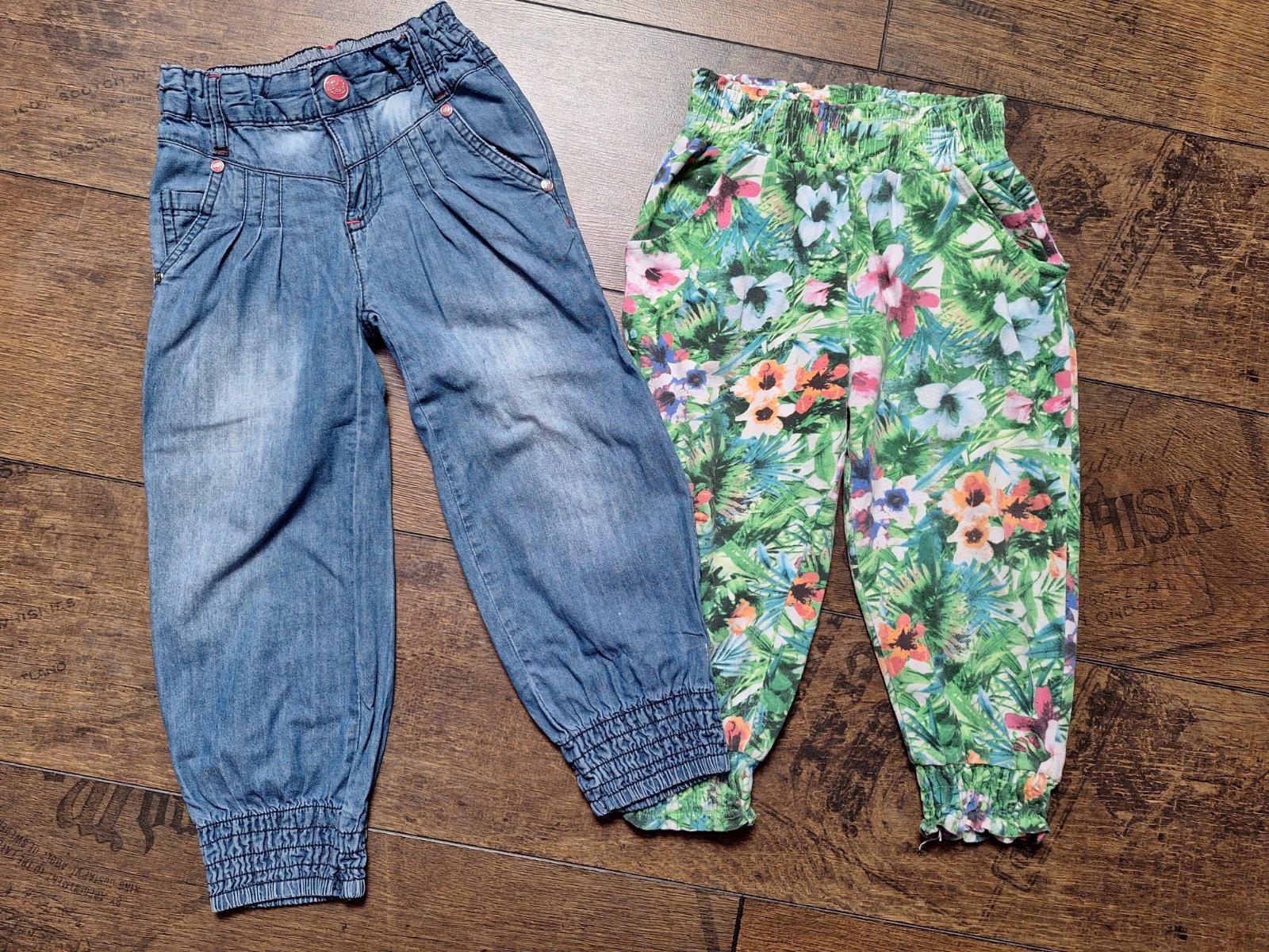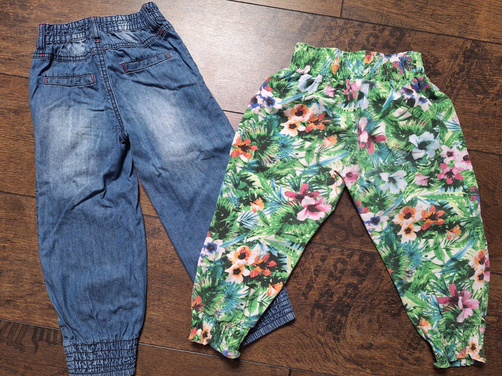 Tenšie rifle vhodne leto/jeseň/jar. V páse sa dajú regulovať. Na spodku guma. Kvetovane háremky grátis.