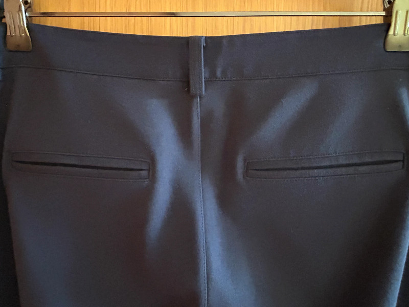 Predám veľmi pohodlné nohavice zn.s.Oliver, tmavomodrá farba, nohavice obsahujú elastan a príjemne sa prispôsobia postave. Maju predné vrecká na zips a zadné výpustkové vrecká, zašité predné puky, čím vyzerajú elegantne aj k saku. Veľkosť 38, rozmery: pás 40x2 cm, boky bez natiahnutia 46x2 cm, dĺžka 103 cm. Ako nové. BA alebo poštou+poštovné.