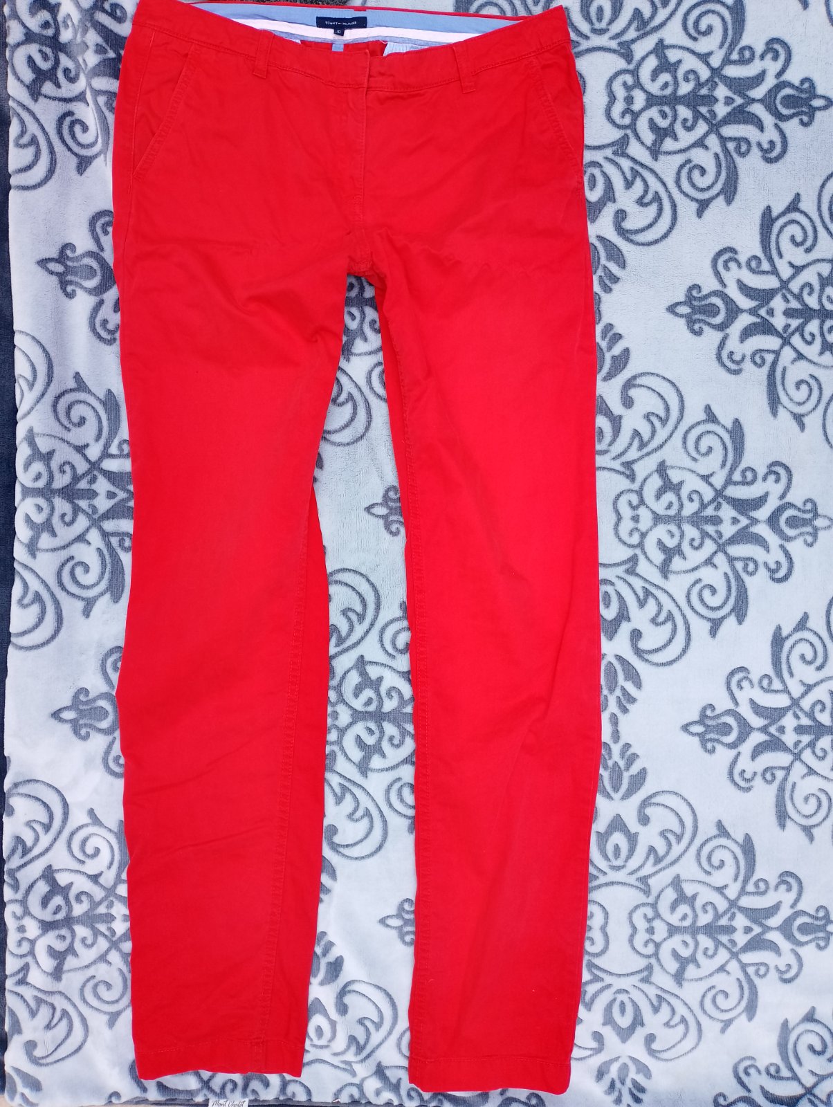 Nosené v dobrom stave, farba sýto červená. Materiál bavlna. Veľkosť udaná 10 sedí an M-L, šírka 43cmx2 a dĺžka 109