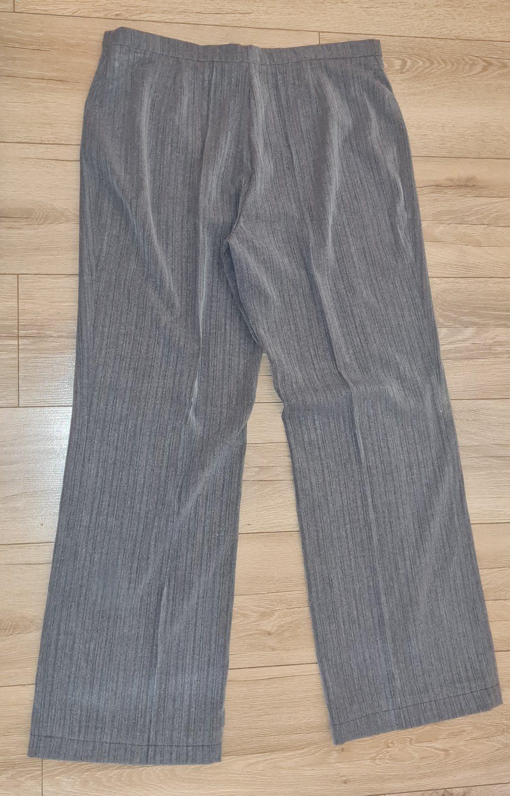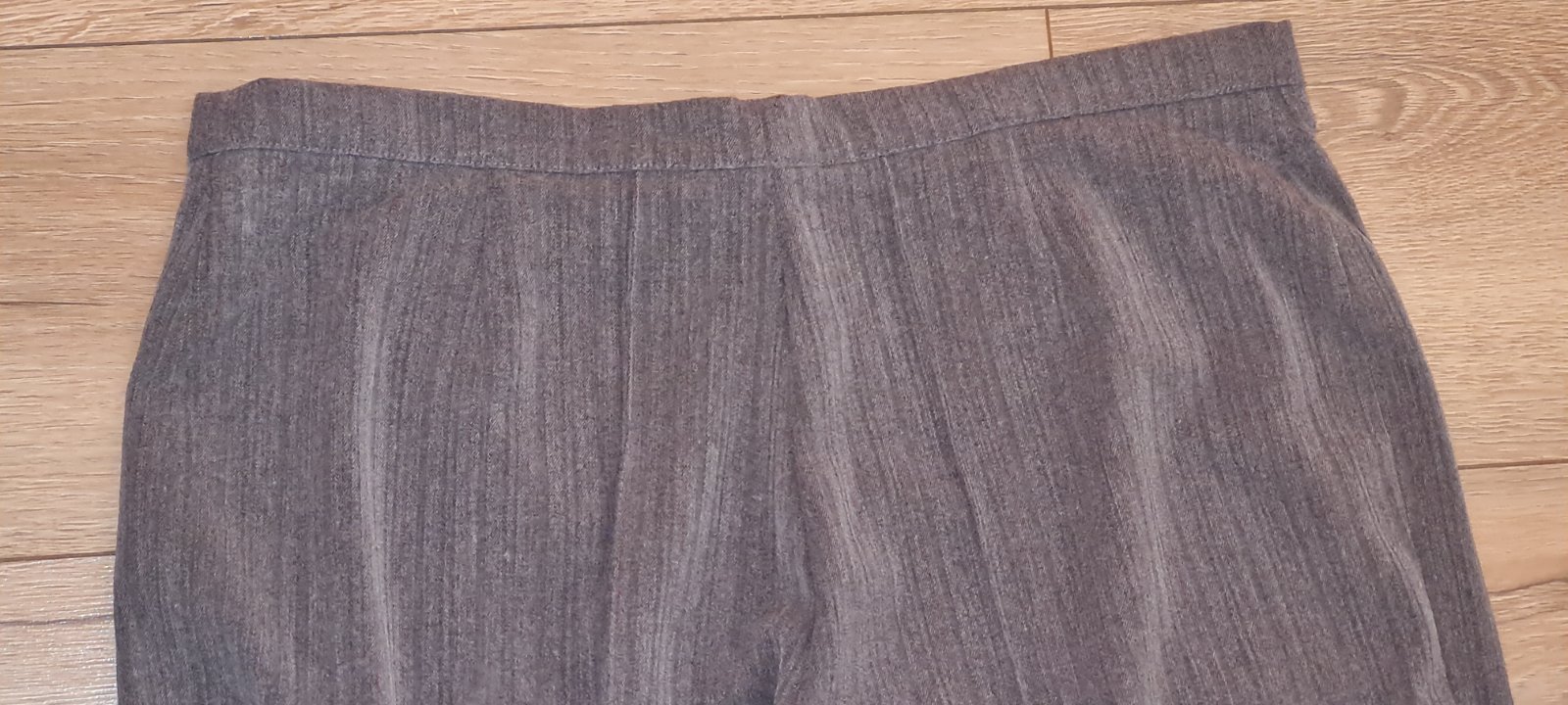 bledo šedé nohavice, pásikové - tmavo šedé a červené tenučké pásiky, predné aj zadné záševky/puky sú zašité, nohavice sú skracované o 5 cm - dá sa to rozpárať a zas budú dlhšie, perfektný stav