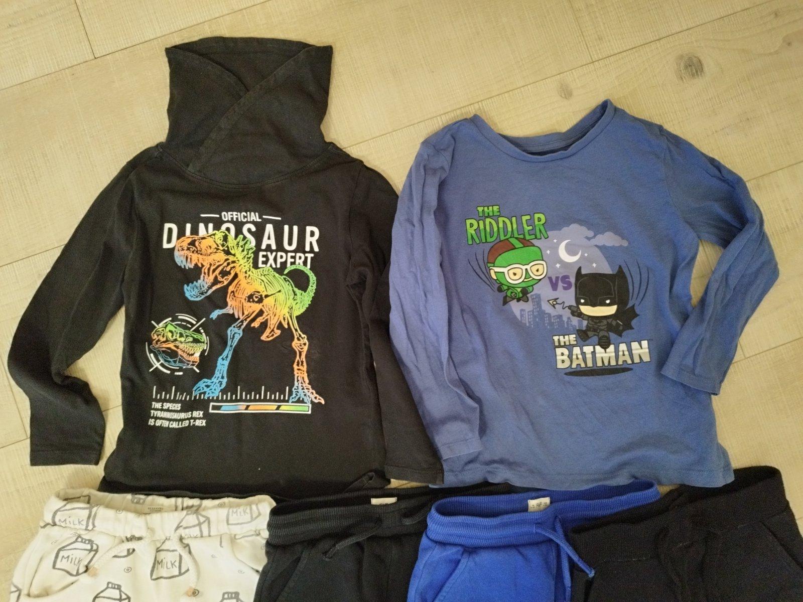 Tričko s dinosaurom je značky Takko (3e), Tričko modré je značky Sinsay (1e), všetko oblečenie je vo veľkosti 110.
