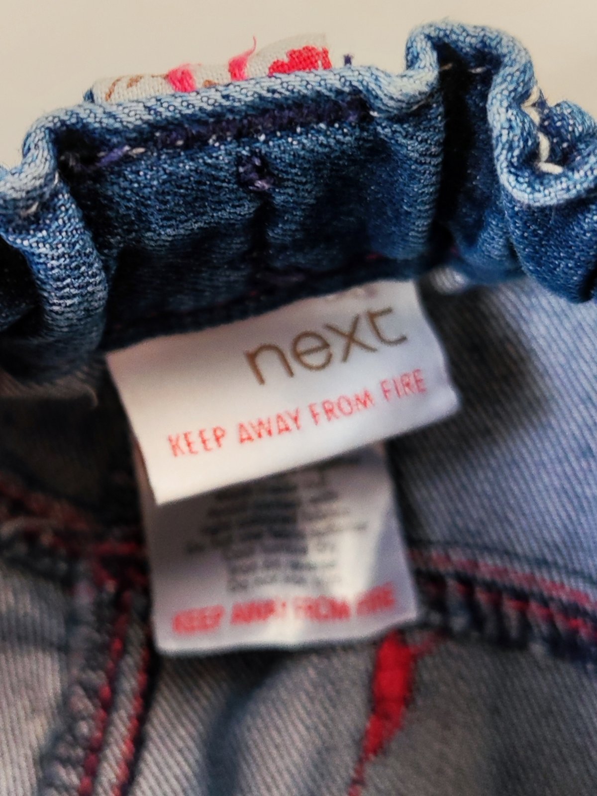 Rifle veľkosť na 9-12 mesiacov . Pekne detaily . Materiál mäkká riflovina. Super stav