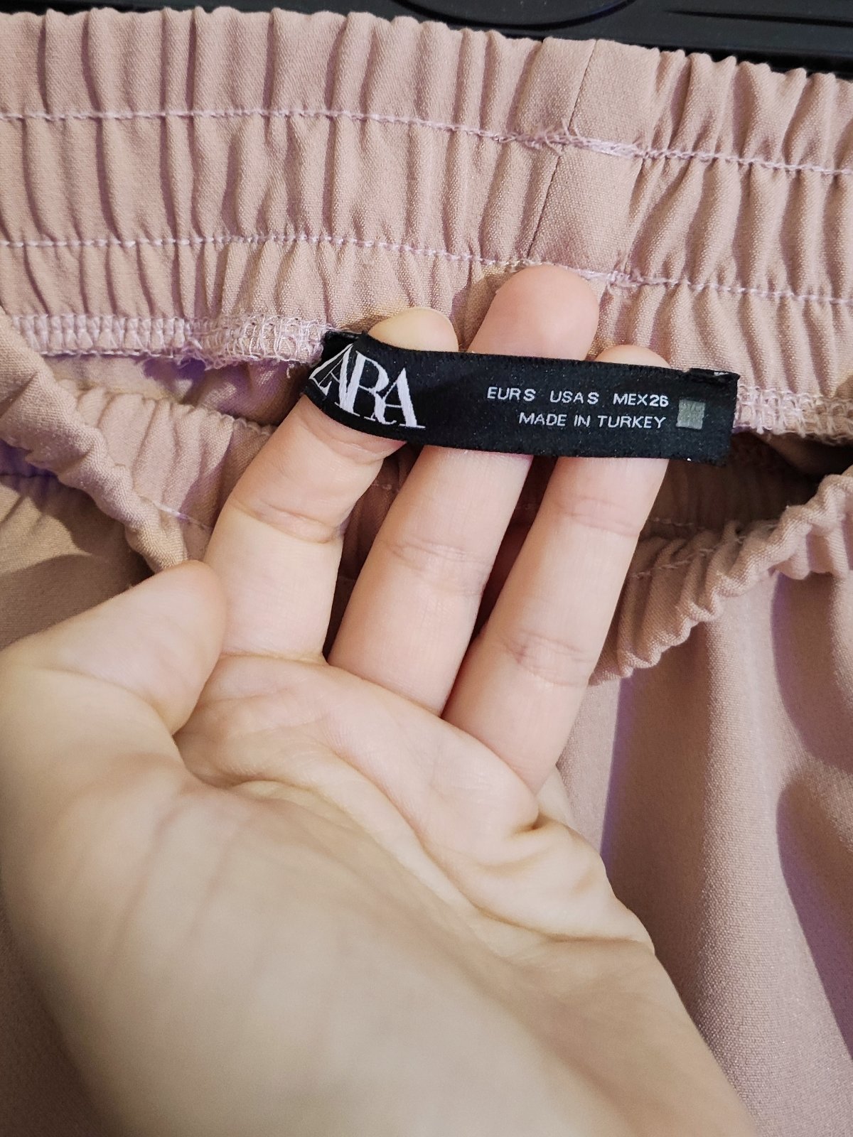 Zara nohavice veľ S, sú mierne elastické, takže sa prispôsobia postave. Sú v top stave, boli raz opraté, ale nenosené, dcére nesadla farba.
