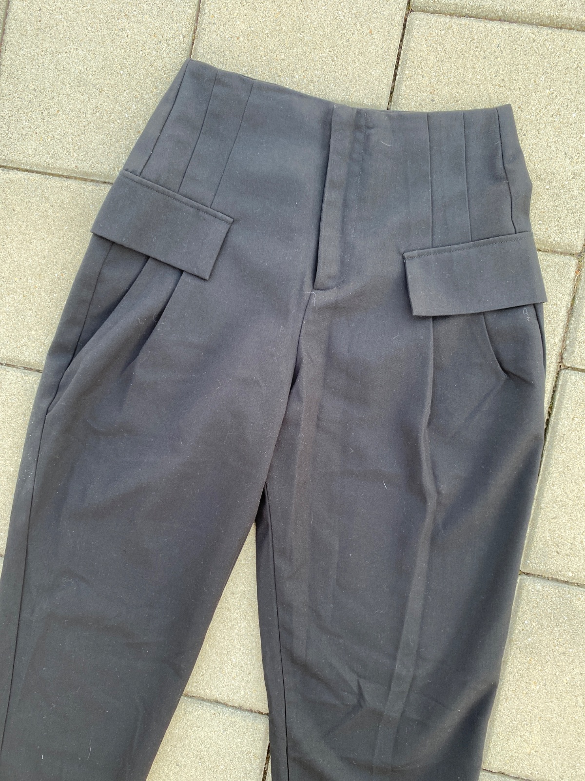 Predám nohavice vo veľkosti xxs v čiernej farbe kupované v sinsay. Nohavice boli iba raz vyskúšané. Bohužiaľ nesadla veľkosť. Celková dĺžka nohavíc od pasu je 83cm. Obvod pásu je 31cm. V prípade ot...