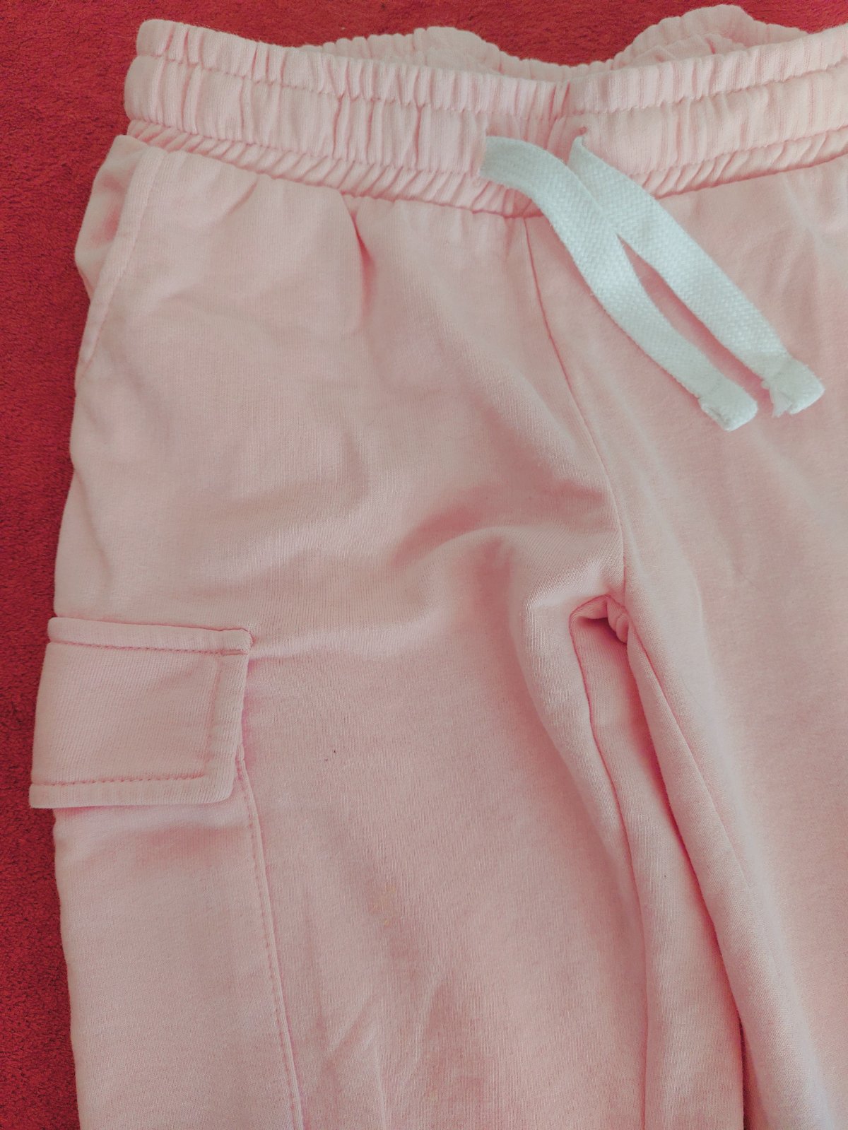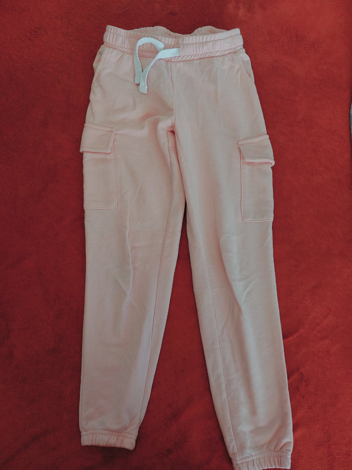 Teplejsie H&M teplaky uzsieho strihu, super sedia. Maju dve vrecka a funkcnu snurku v pase. Pouzivane, zmolcek z prania, ale inak bez dier a flakov.