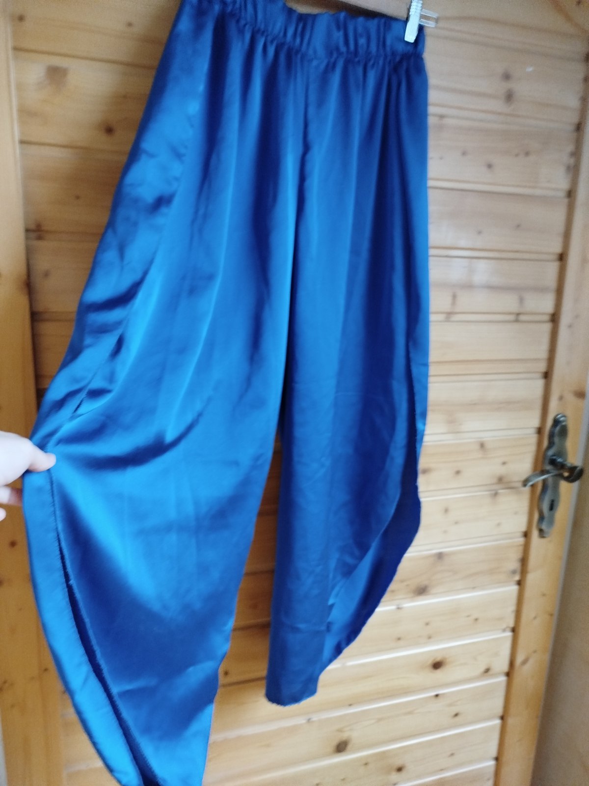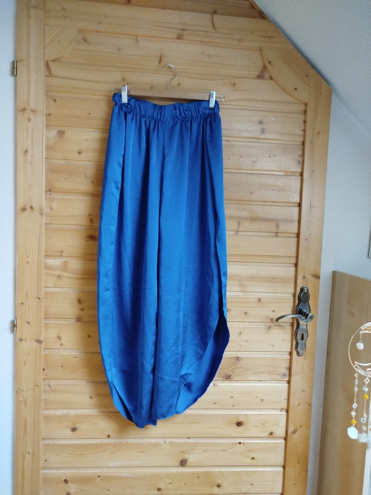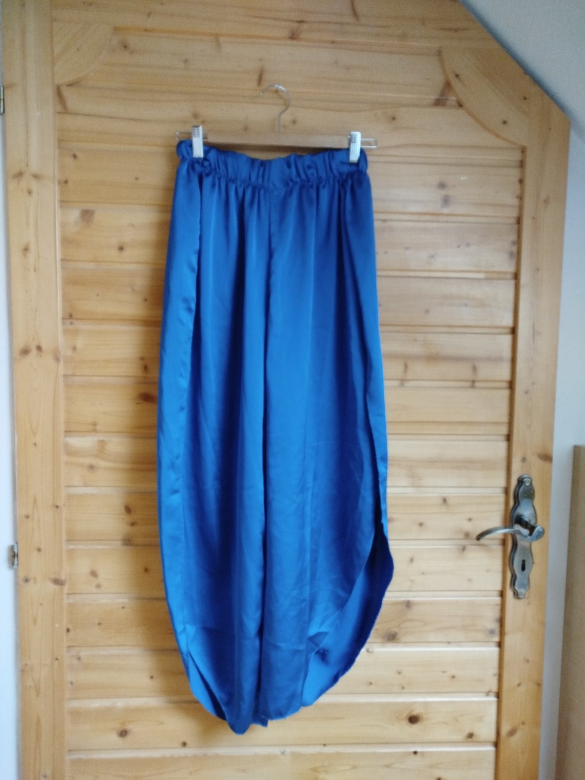 Nohavice voľnégi strihu v páse na gumičku sadnú na S a M po bokoch majú rozparky krásna sýta kráľovská modrá farba ako nové