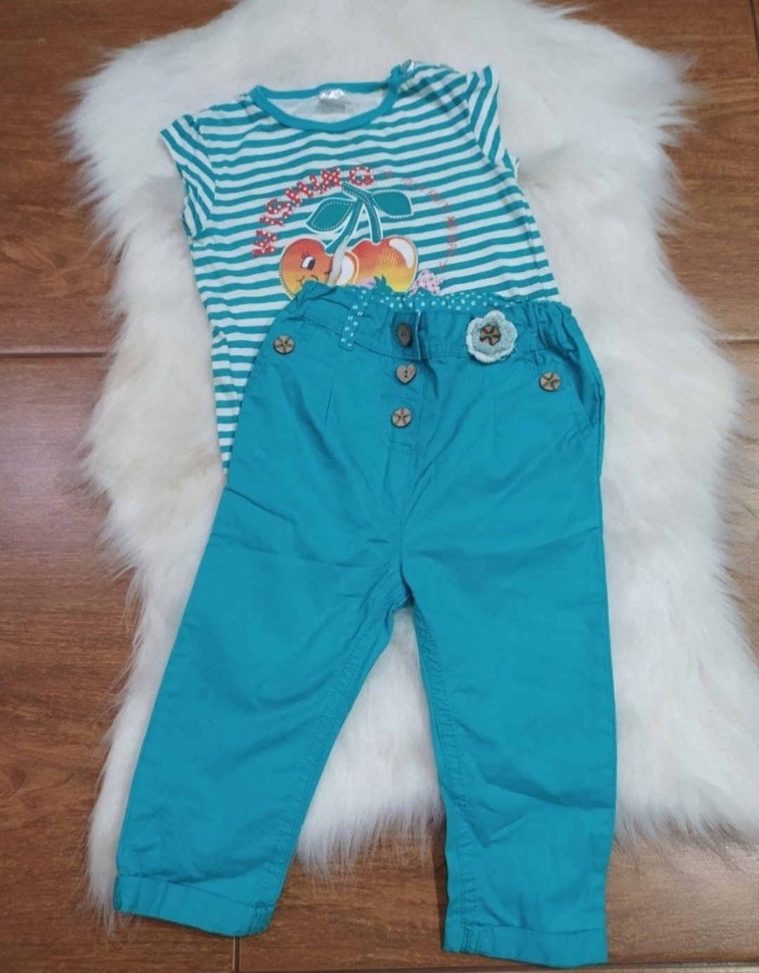 Pekné tenšie nohavice vínova farba,nosene malo mali sme veľa v pase gumička na reguláciu.Veĺkosť 86,ale využitie aj dlhšie. Dĺžka 47cm