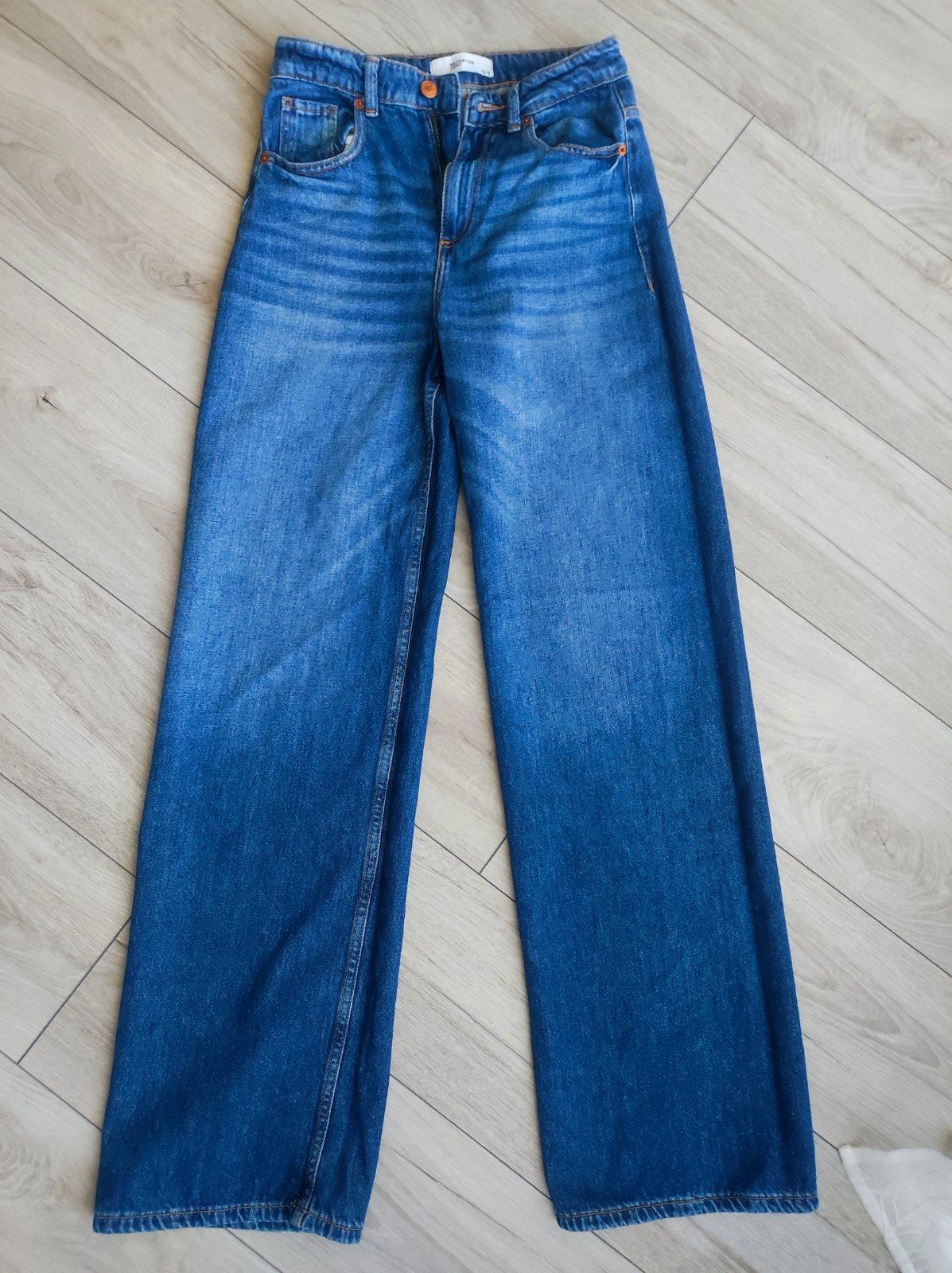 Nosené minimálne, bez poškodenia. Značka Reserved. Dĺžka 93cm, kroková dĺžka 65cm, pás 33cm, predný/zadný sed 24/33cm, obsahujú elastan. Sedia na 34/36.