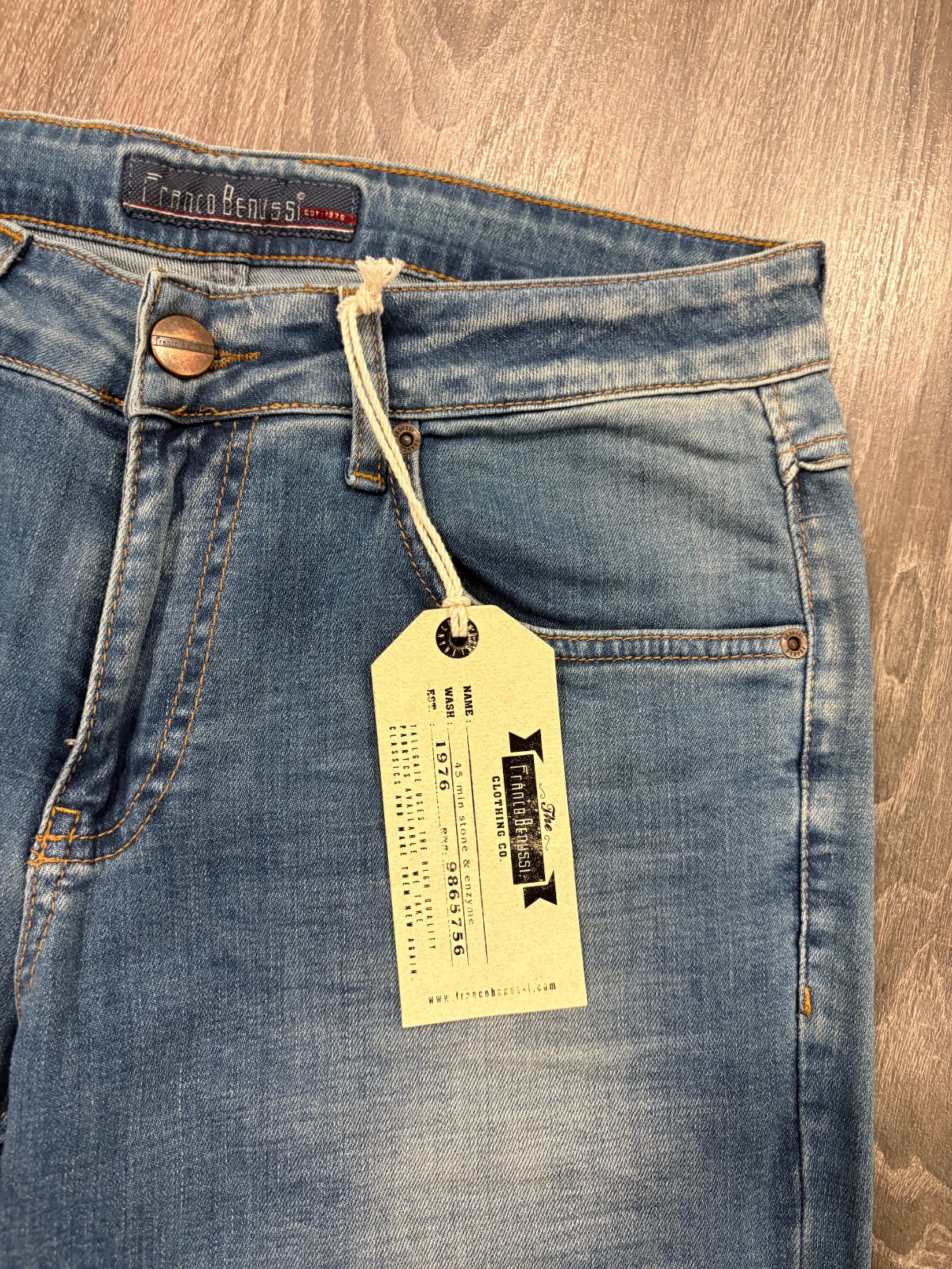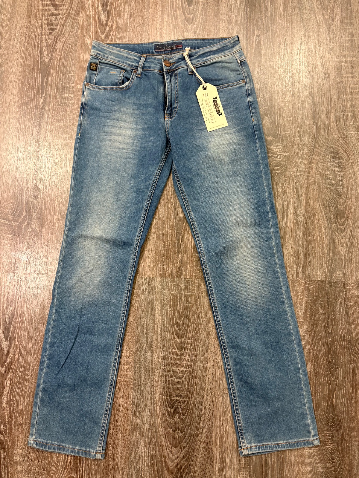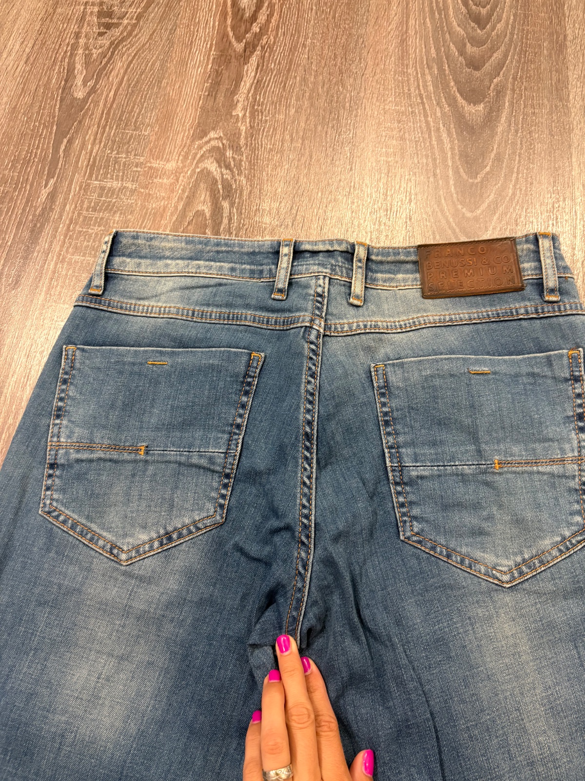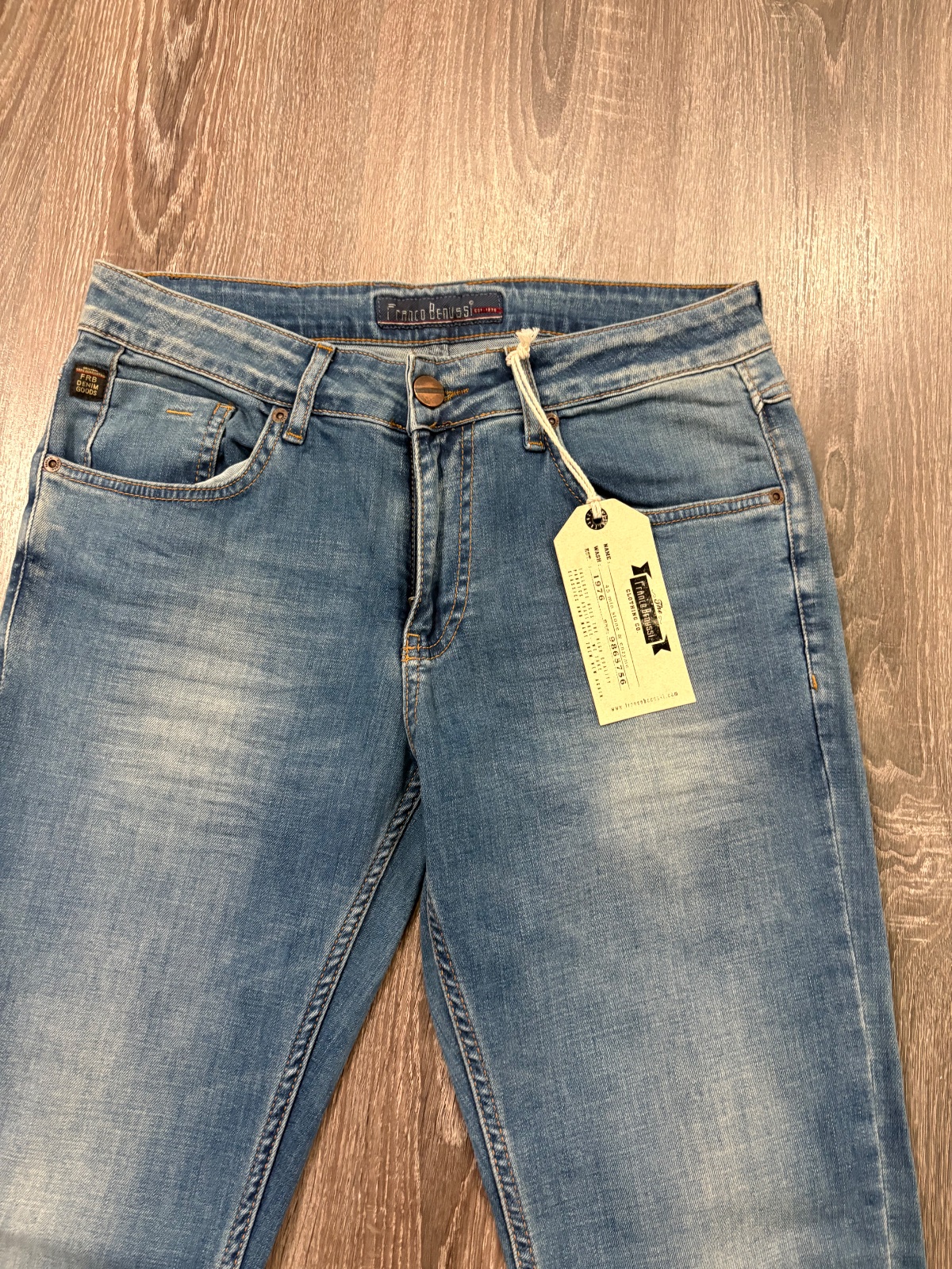 FRanco Benussi nove panske riflove nohavice,komplet s etiketou,PC 55 eur, material bavlna a elastan,velkost W31 L30,dlzka je 103cm ,sirka v pase je cca 41x2cm,predny sed je 25cm a zadny je 36cm,sirka stehna pod rozkrokom je od 30x2cm do 32x2cm,sirka dole je 19x2cm