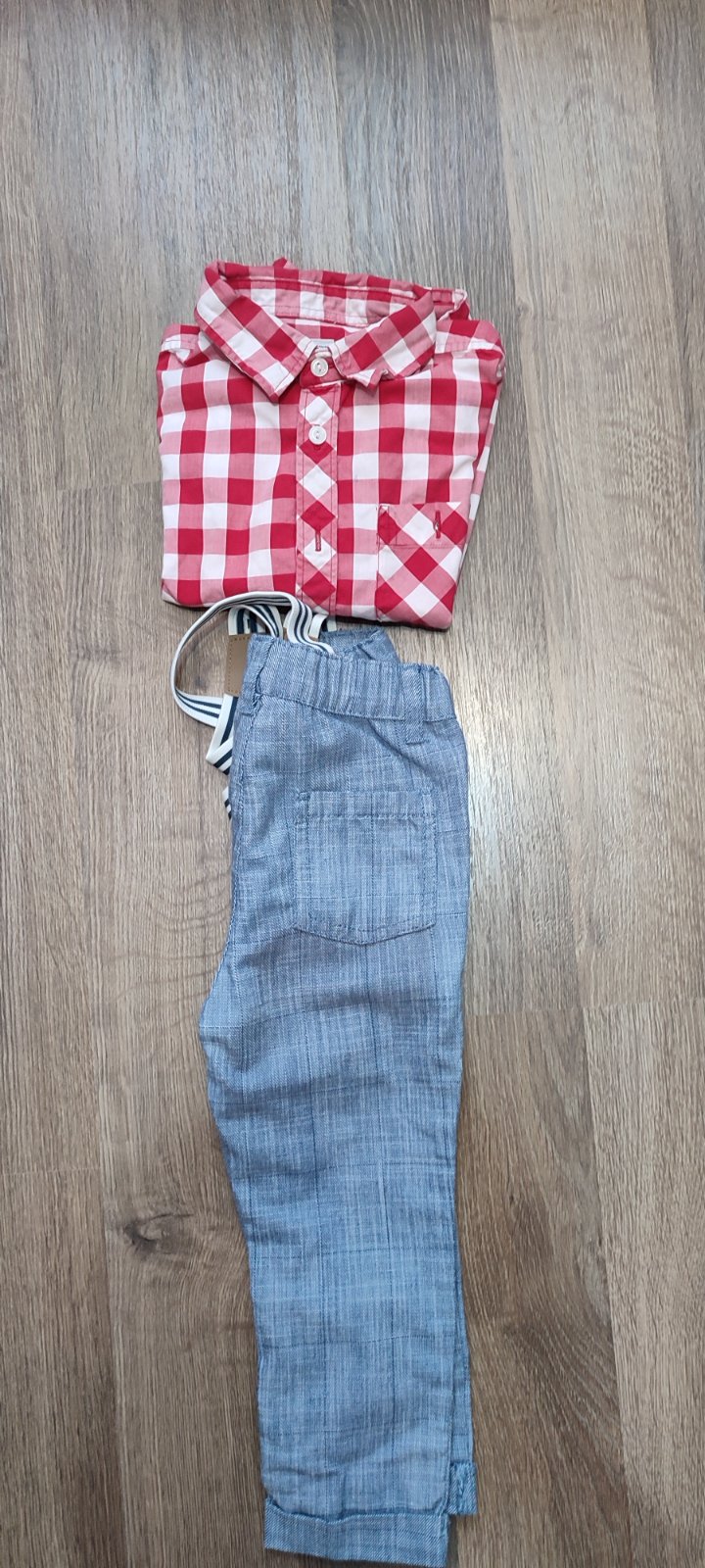 Ponúkam detské elegantné nohavice s odopínateľnými trakmi. Nastaviteľný pás aj traky. Nohavice sú pohodlné, v krásnom stave. Oblečené maximálne dvakrát. Pridávam k tomu aj košeľu, vpredu má malilinký fliačik, ktorý bez upozornenia ani nezbadáte.