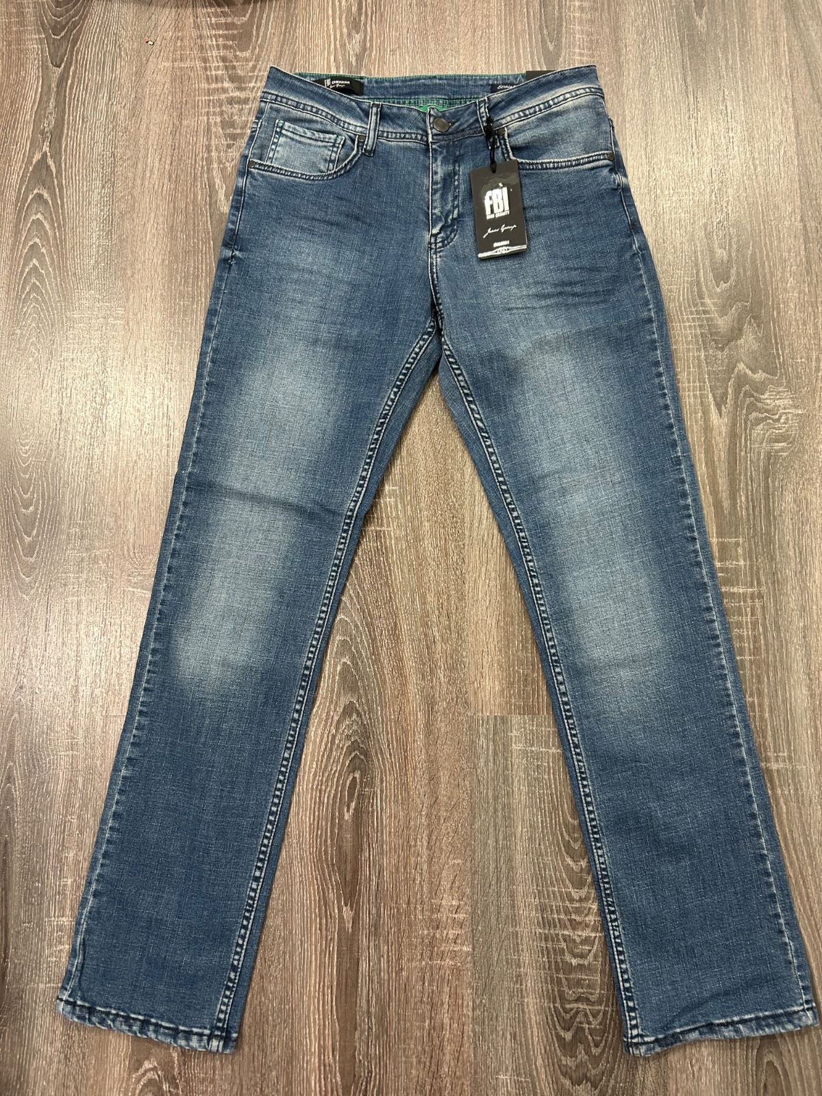 FBI Denim nove panske rifle ,komplet s etiketou,PC 55 eur, material bavlna a elastan,velkost W30 L33,dlzka je 105cm,sirka v pase je cca 40x2cm,predny sed je 25cm a zadny je 35cm,sirka stehna pod rozkrokom je 30x2cm