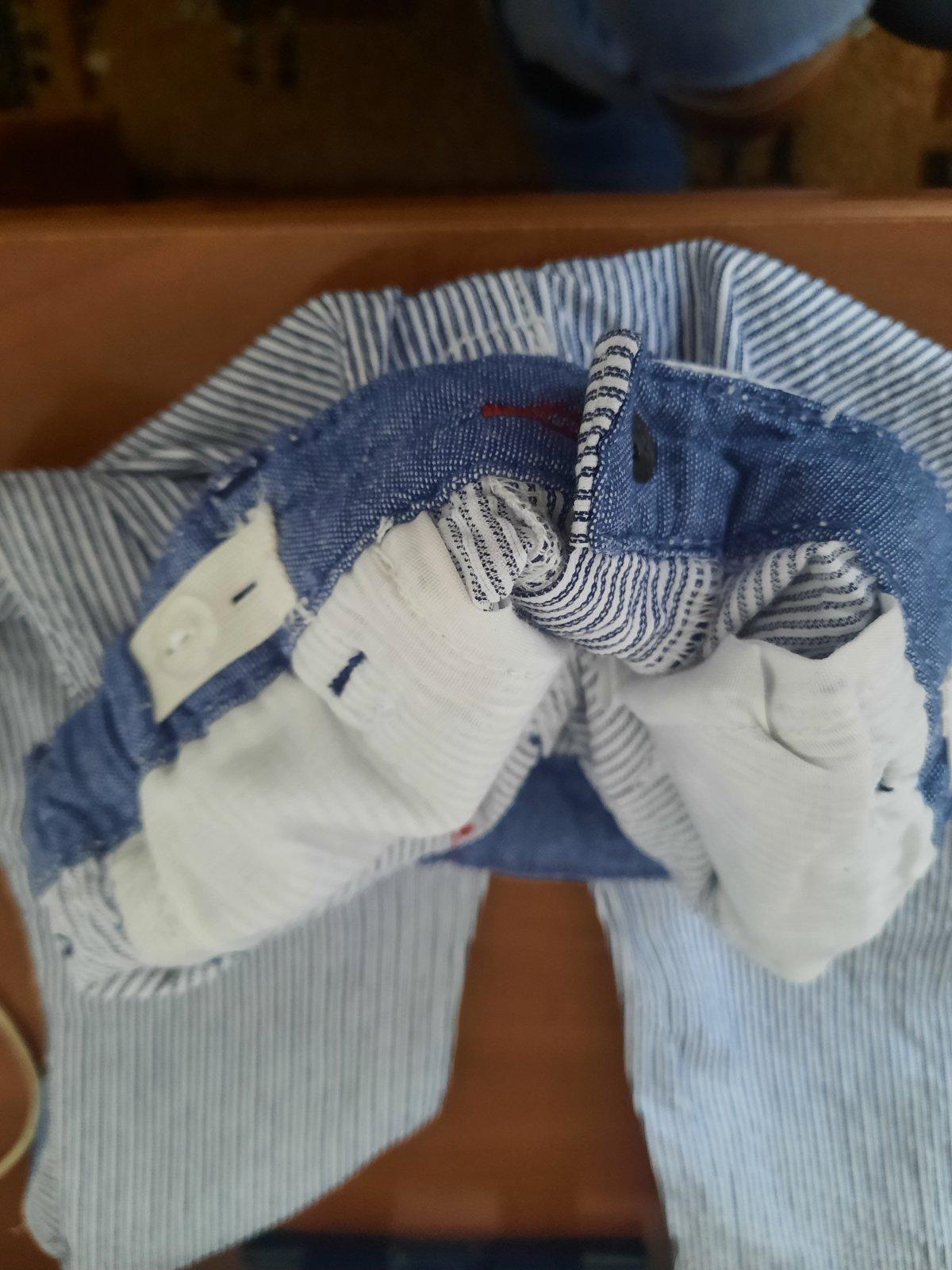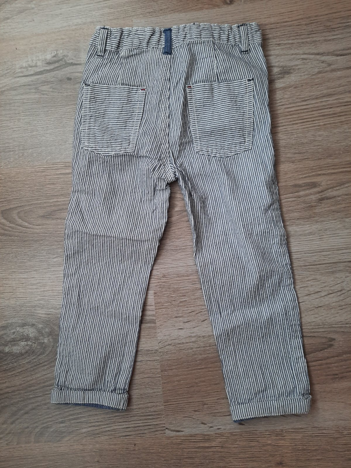 Veľmi pekné vzdušnejšie pásikavé nohavice. V páse je guma na reguláciu. Vačky sú vpredu aj vzadu.