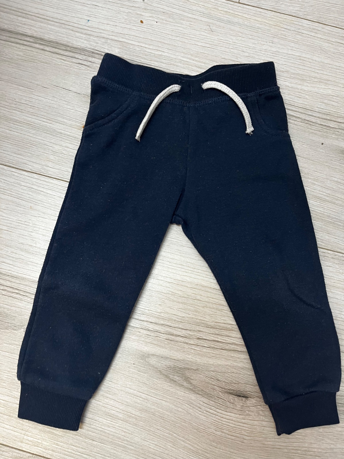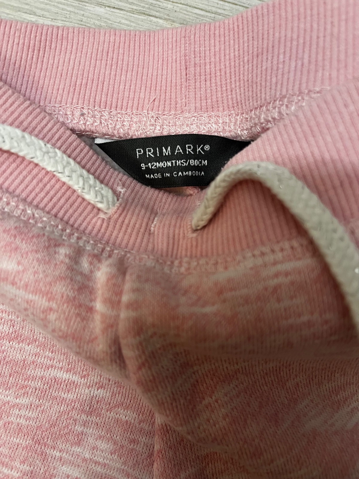 Predám dva kusy tepláčikov so šnúrkami v páse (bledoružové/tmavomodré) značky Primark, veľkosť: 80 (9-12 mesiacov).